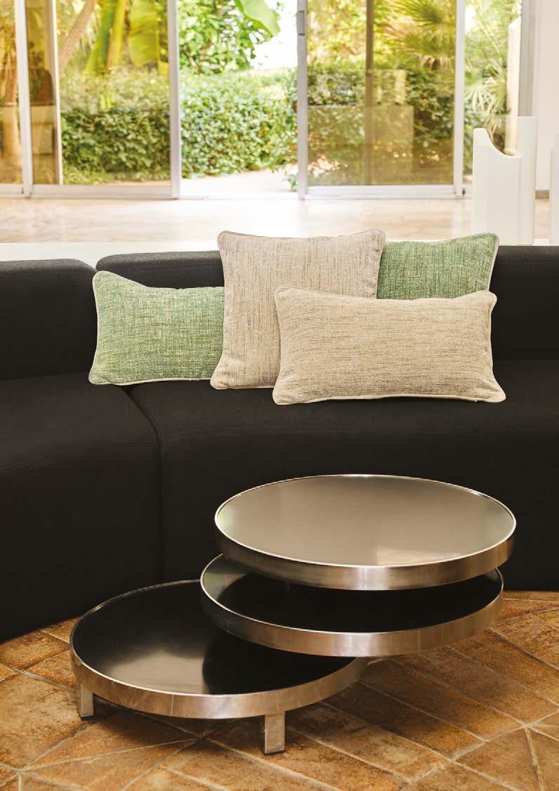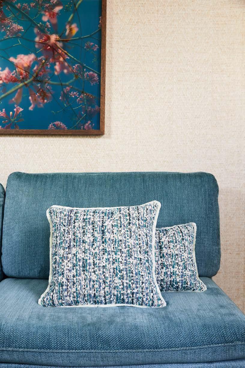 Pillows : back in herringbone. Fringe nish and zipper closure at bottom. 18’’×18’’.