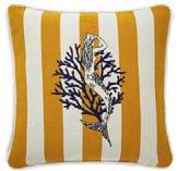 Le tissage italien de ce coussin en tapisserie regorge de détails végétaux stylisés. Une frange de coton écrue fait ressortir les lumières du dessin.