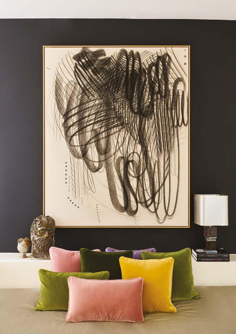 Choisir 4 teintes au milieu de centaines de coloris de bobines de ls, puis les tisser sans volonté de créer un motif et obtenir un ou contemporain laissant s’exprimer les couleurs. La technique de tissage de velours épinglé magni e la proposition. Tissage jacquard, nition franges et fermeture par zip en bas de la housse. Coton majoritaire. 45 × 45 cm et 33 × 57 cm.