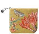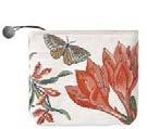 Trousse : doublure intérieure en lin. Fermeture par zip métal avec cordon muni d'un bouton. 16 × 22 cm.