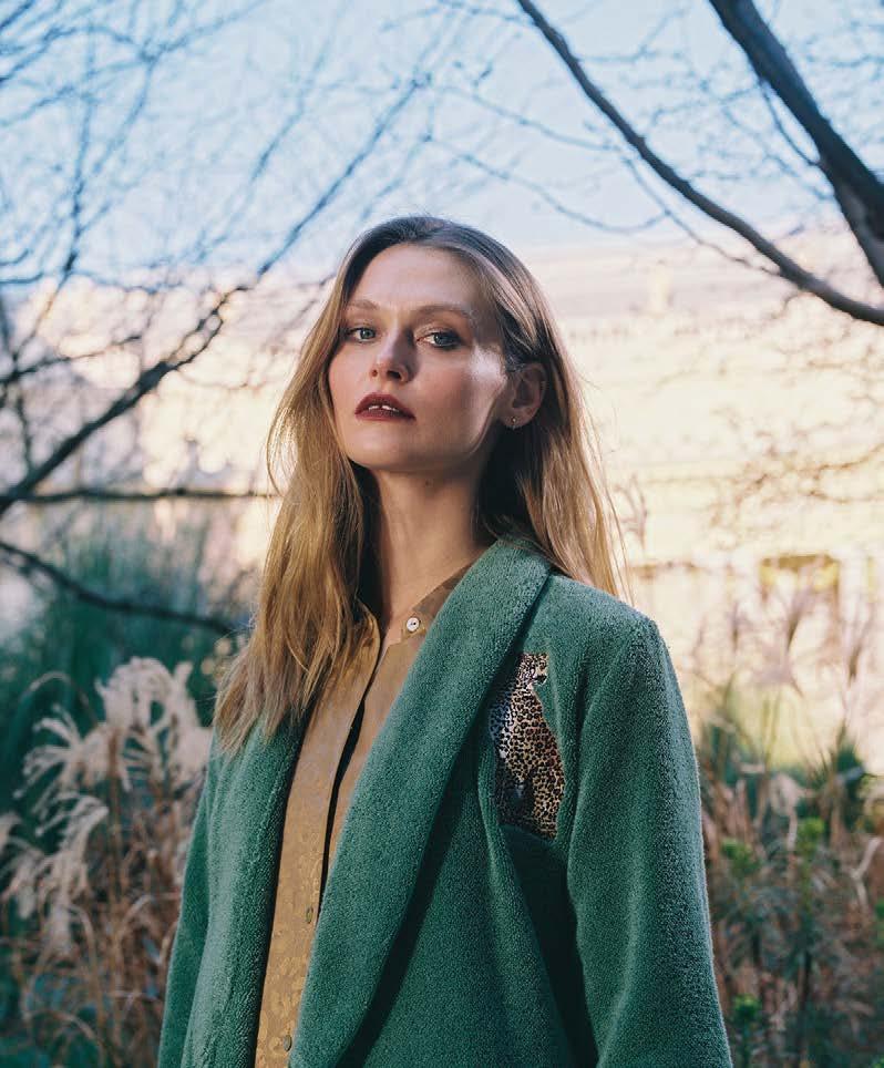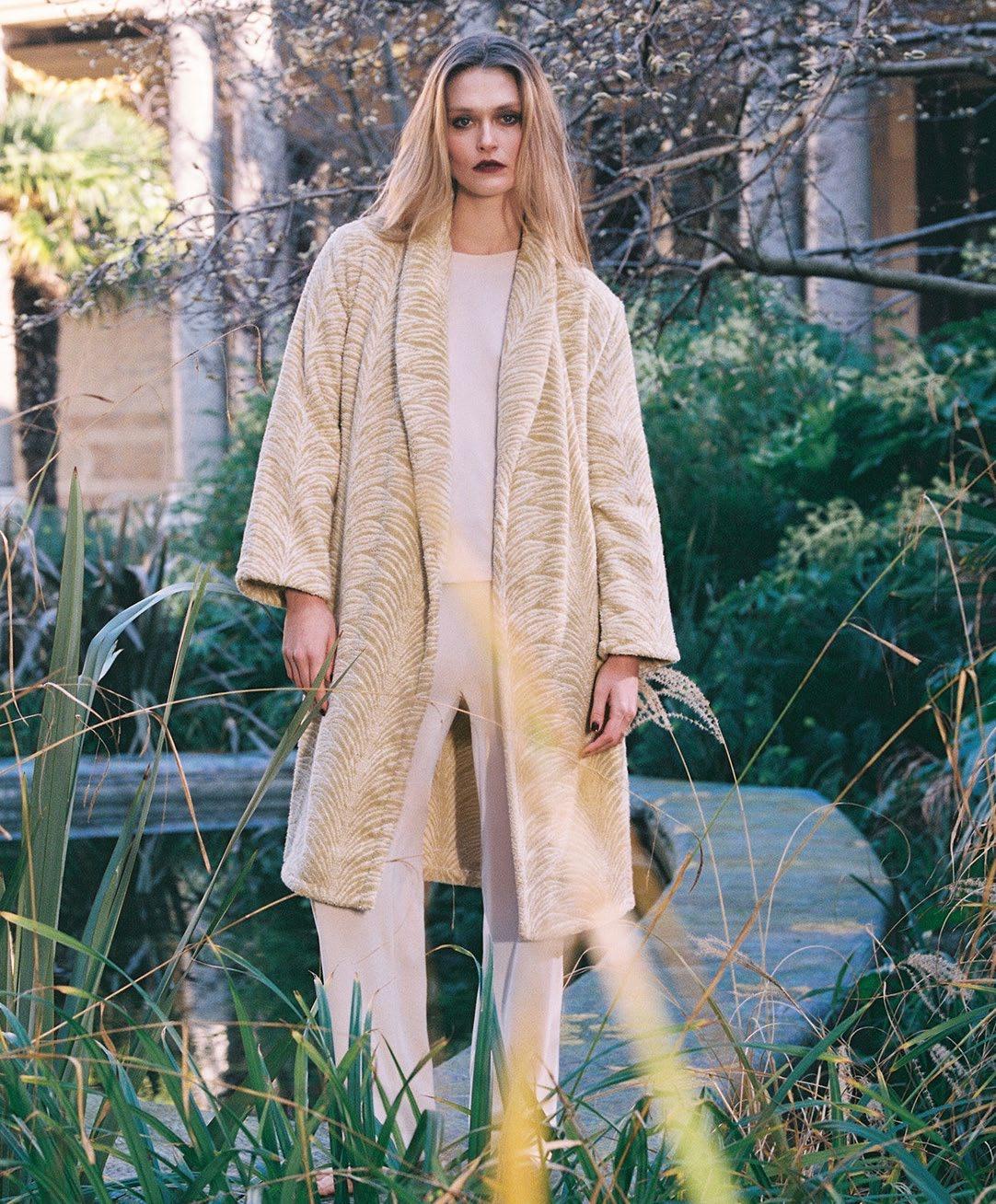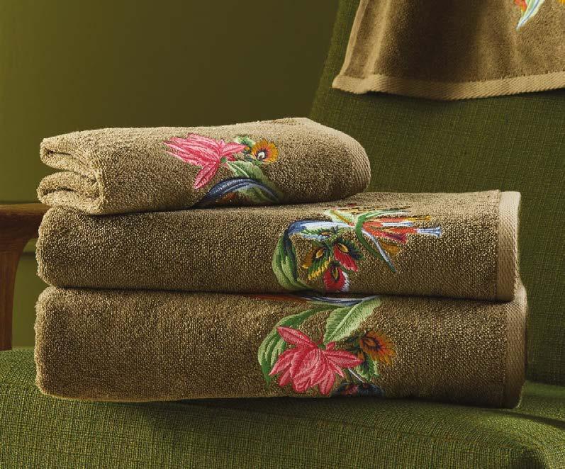 naturelle sur une teinte céladon ou doucement parmée. Une nition frangée