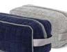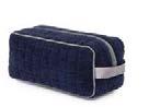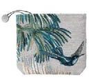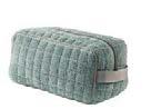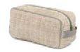 Trousses : doublure intérieure en lin. Fermeture par zip métal avec cordon muni d'un bouton. Coton majoritaire. 16 × 22 cm.