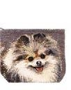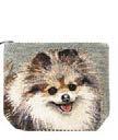 L U L U Ebouri é et heureux, un adorable spitz se détache sur deux variantes de fonds bouclés. Tapisserie en jacquard tissée en Belgique.