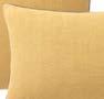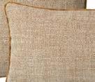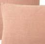 Coussins : revers tissé 100 % lin. Finition franges et fermeture par zip en bas de la housse. 45 × 45 cm.