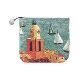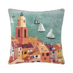 Who will win ? The wind blows and the tall ships set o into the harbour, under the patronage of the famous bell tower. Tapestry cotton jacquard.