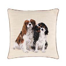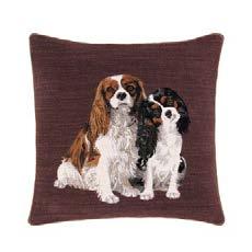 Two Cavalier King Charles Spaniel friends look at us enquiringly : is it nally time to go out ? Cotton Jacquard tapestry, woven in Belgium.