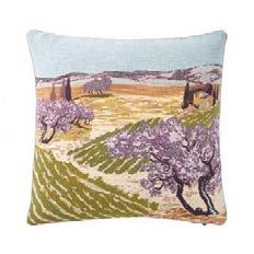 A view of the rolling hills, lavender elds and olive trees, under the clear sky of Provence. The holidays have begun. Tapestry cotton jacquard.