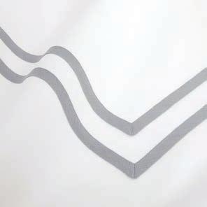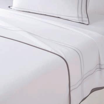 Percale, 100 % Supima coton peigné extra longues fibres, 200 fils/cm². Galon 100 % lin. Blanc uni avec deux galons appliqués en lin coloré, finition point nervure. Harmonie Pastel pour les photos 1 et 2 ; coloris Brume pour les photos 3 et 4. 100% Supima extra long staple combed cotton percale, 200 thread count. Ribbon : 100% linen. Colored duo of linen ribbons applied, Point nervure finish. Pictures 1 and 2 : Pastel color ; pictures 3 and 4 : Brume color.