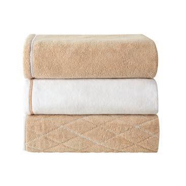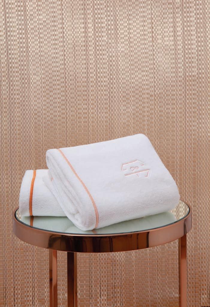 Éponge unie finition avec bourdon coloré sur éponge blanche et bourdon blanc sur éponge colorée. 100% coton, 550 g/m². À coordonner avec le tapis Adagio Embroidered terry. Colored bourdon finsih for solid white terry and white bourdon for colored solid terry. 100% cotton, 550g/m². To match with Adagio Bath Mat.