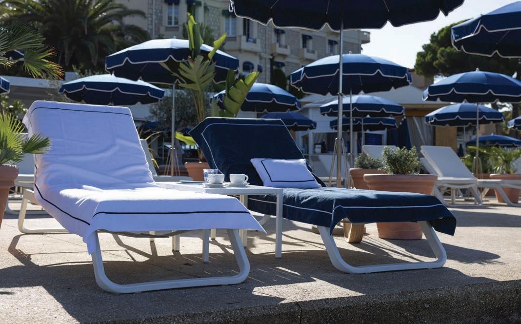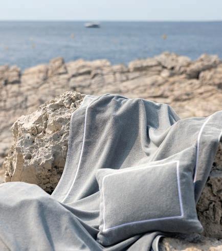 1. Draps de plage et coussin Beach towels and cushion Croisière Blanc, Marine et Marine / 2. Gamme de serviettes de plage Beach towels range Croisière / 3. Coussin de plage Beach cushion Croisière Platine.