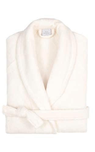 1. Peignoir bathrobe Étoile Blanc / 2. Gamme peignoir mixte unisex bathrobe range Étoile Blanc, Thé, Nacre, Pierre, Platine et Marine. / 3. mules mixtes unisex slippers Étoile Blanc, Nacre, Pierre et Platine.
