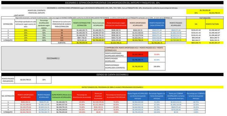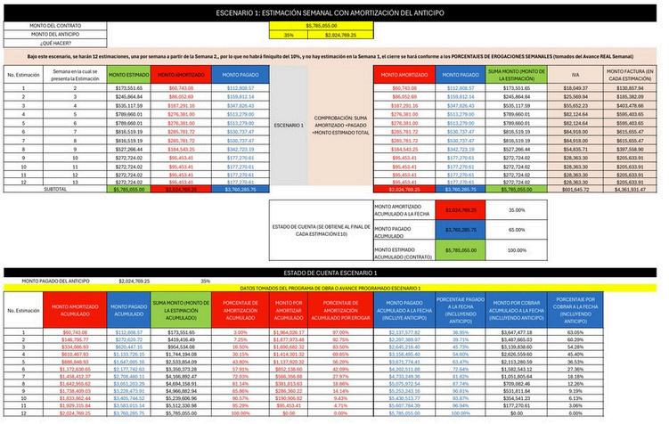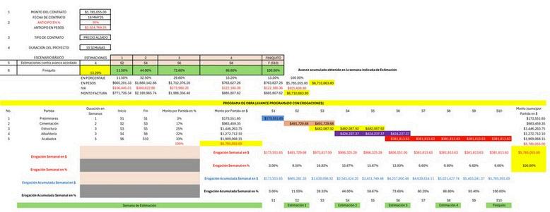 En Excel analizamos un Programa de Obra con detalles sobre presupuesto, flujo de gastos, estimaciones y el estado de cuenta de un proyecto.