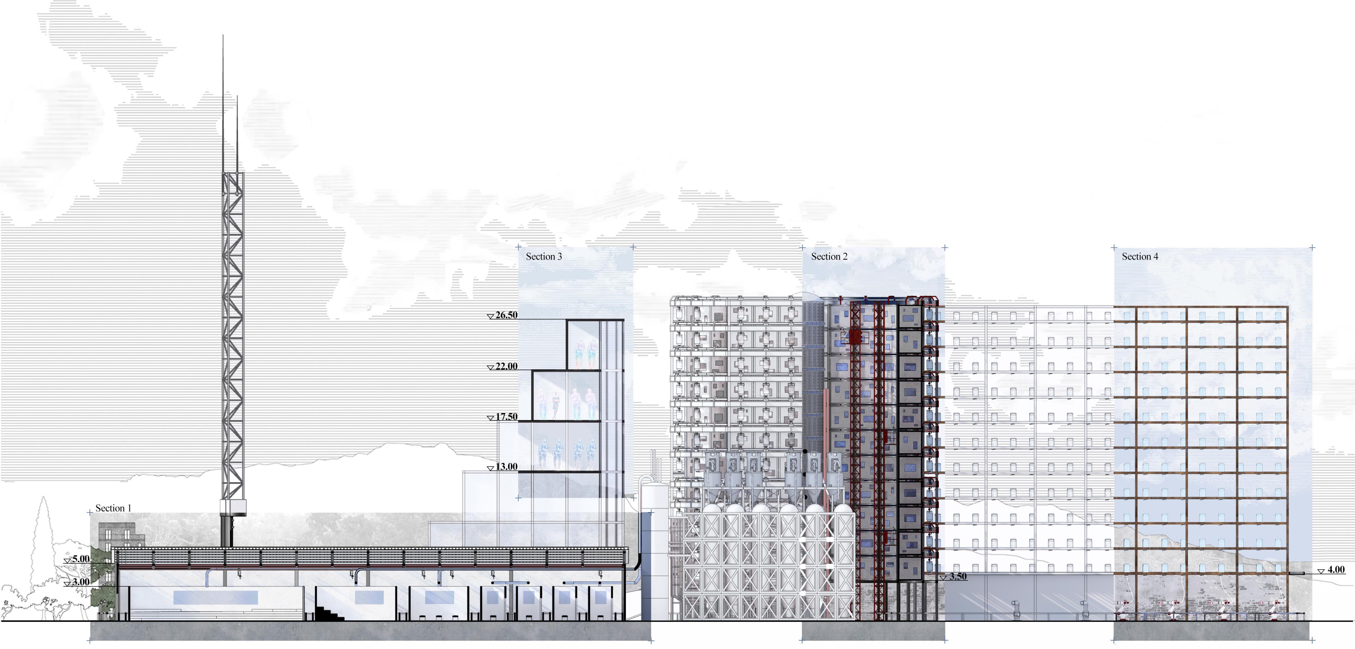 The aim of the project is to challenge the existing adaptive relationship between the hospital and the times, where the hospital stands at the intersection of the body-city, and the images show the past, present and future that the hospital faces.