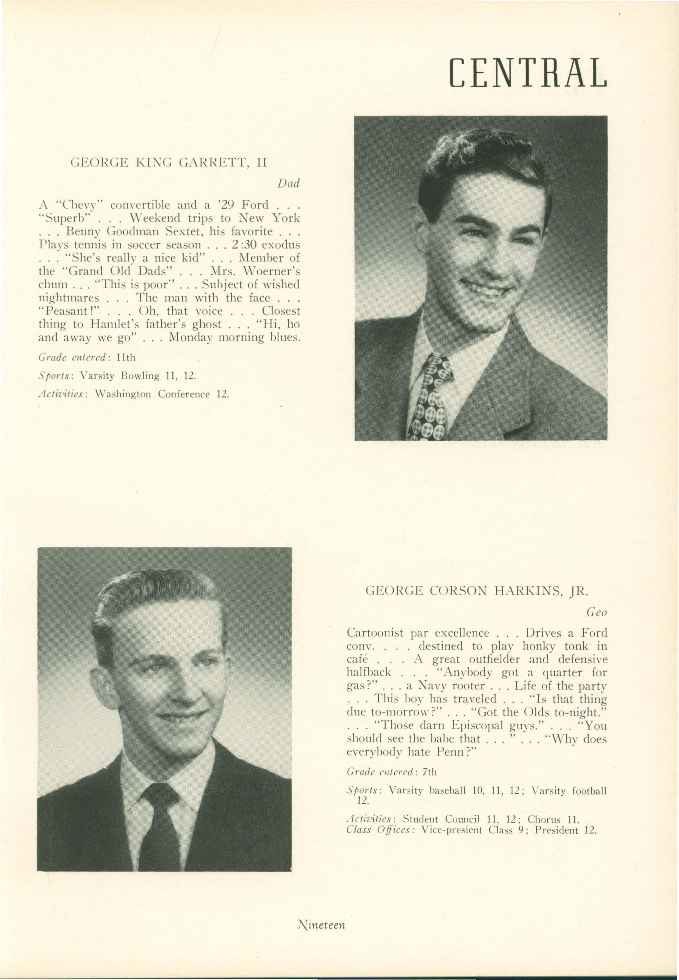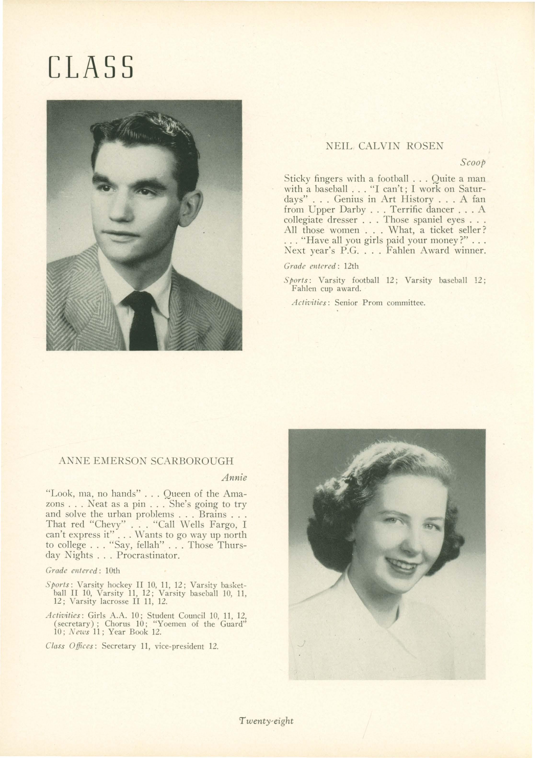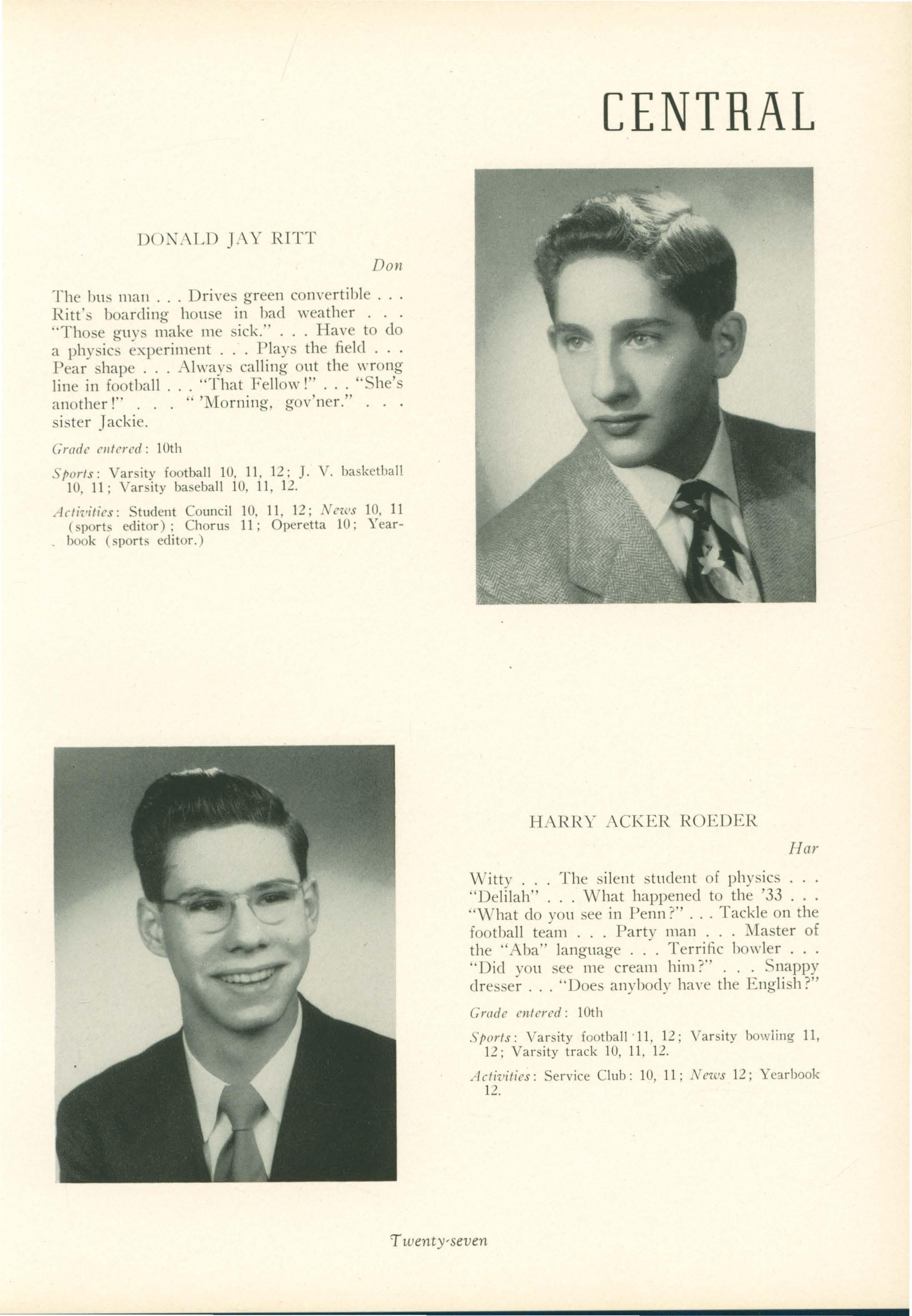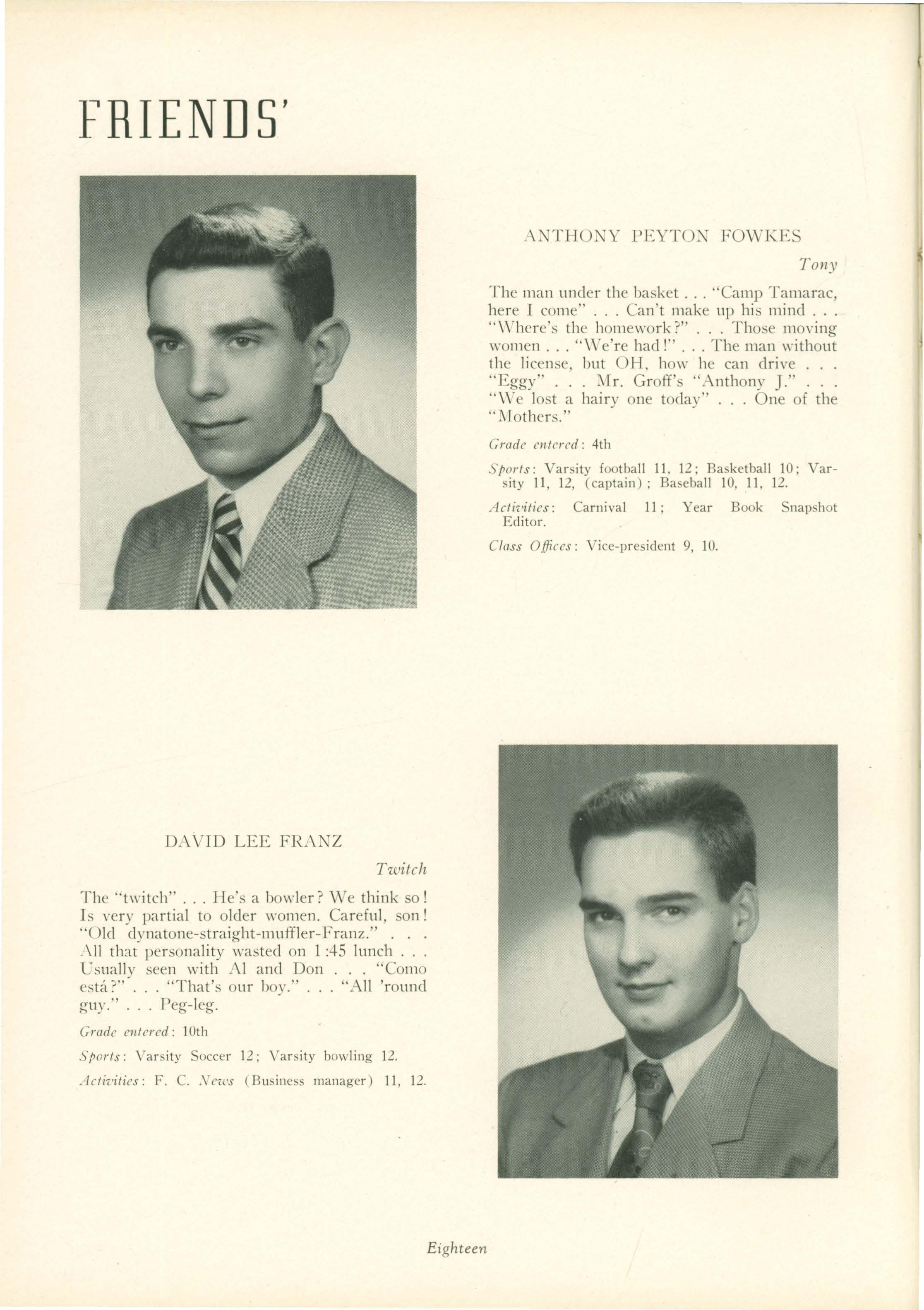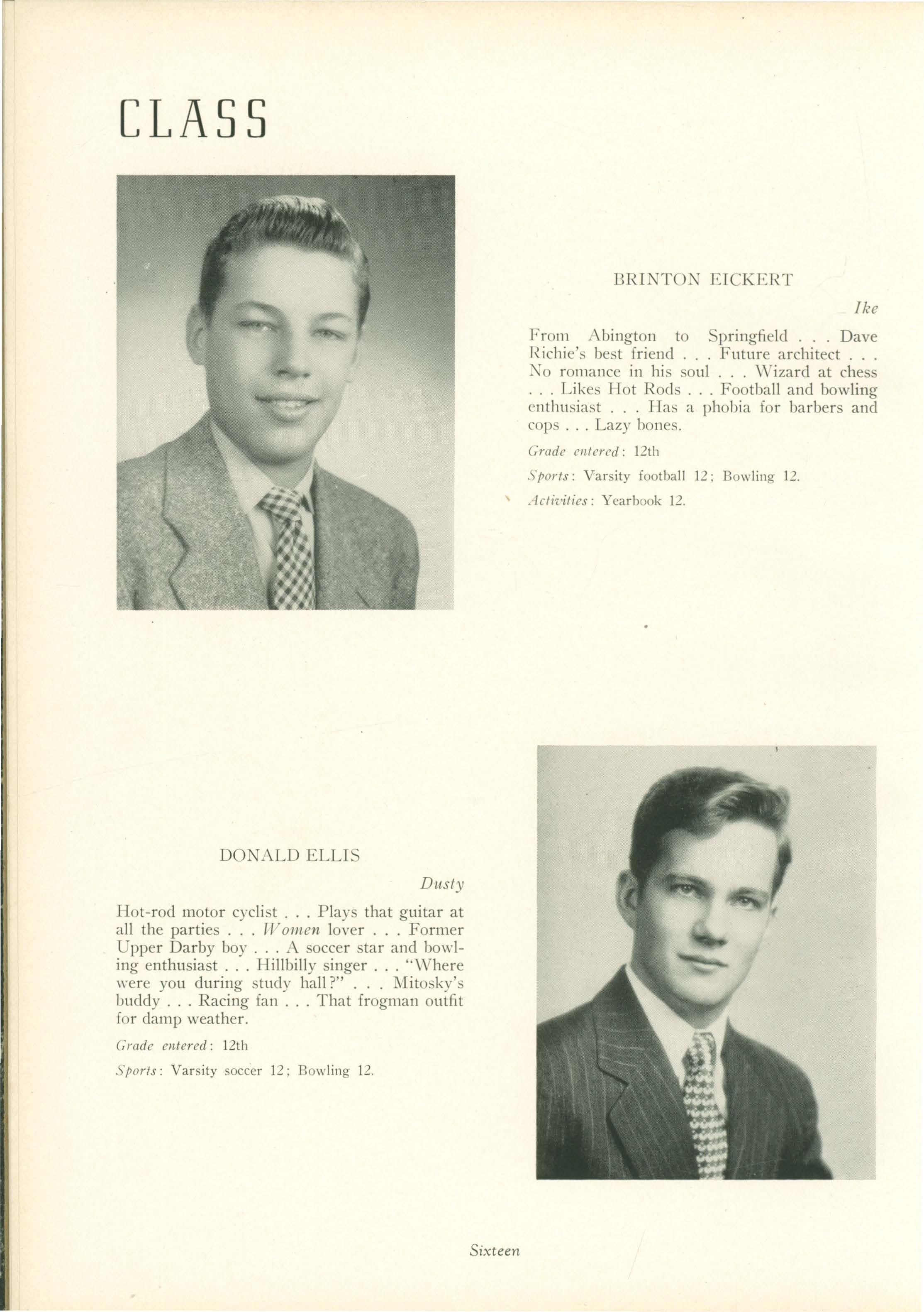 Sports: J .V. basketball 10 ; Varsity baseball 10, 11, 12 (Captain) 11 and 12; Varsity football 11, 12.