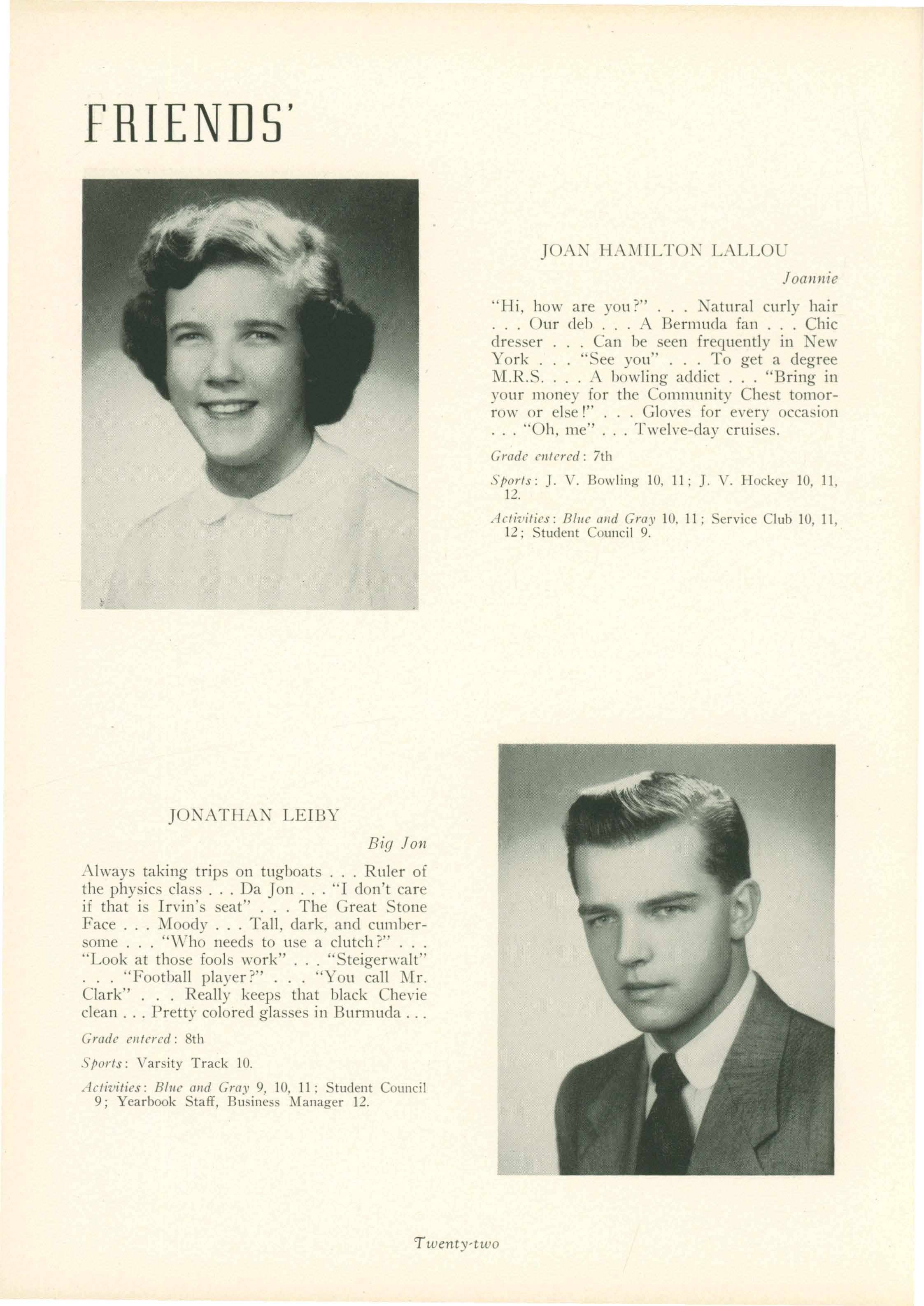 Sports: Varsity bowling 10, 11, 12; LaCrosse II 10, 12; Hockey Varsity II 9, 10, 11, 12; II J.V. Basketball 9.