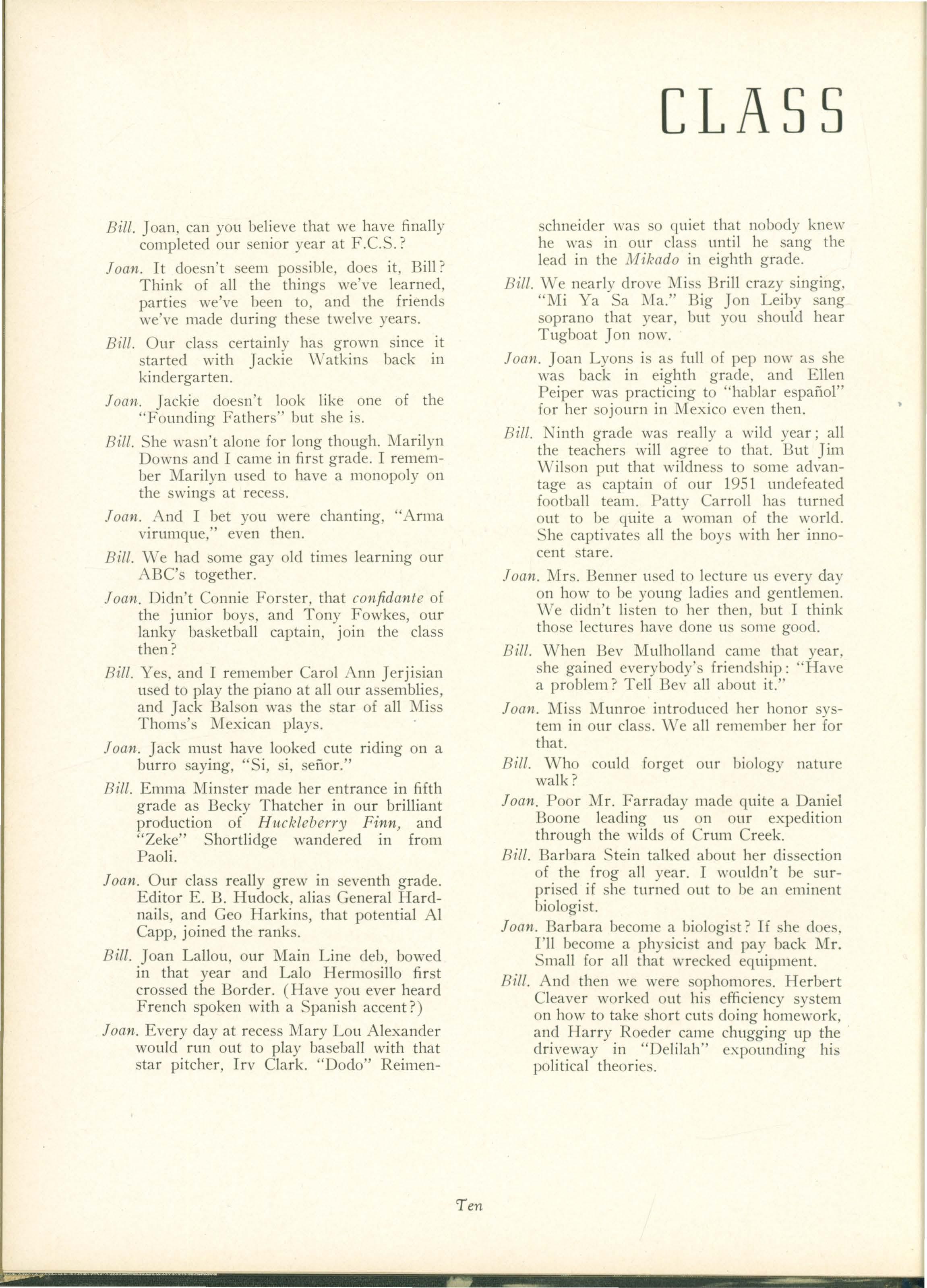 Bill. Joan. can you believe that we have finally completed our senior year at F.C.S.?