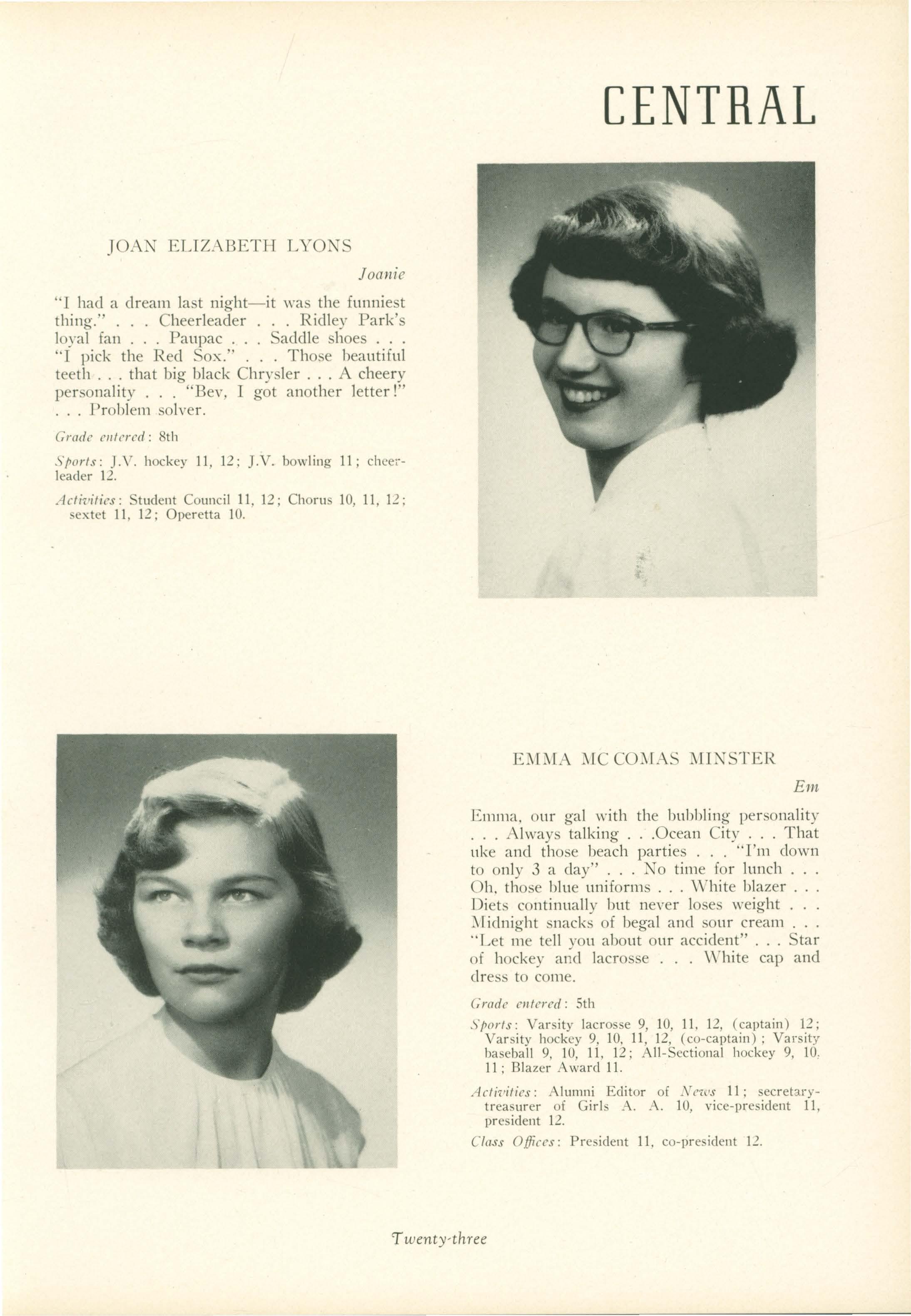 Joan. Joan Lyons is as full of pep now as she was back in eighth grade, and Ellen Peiper was practicing to ''hablar espafiol" for her sojourn in Mexico even then.