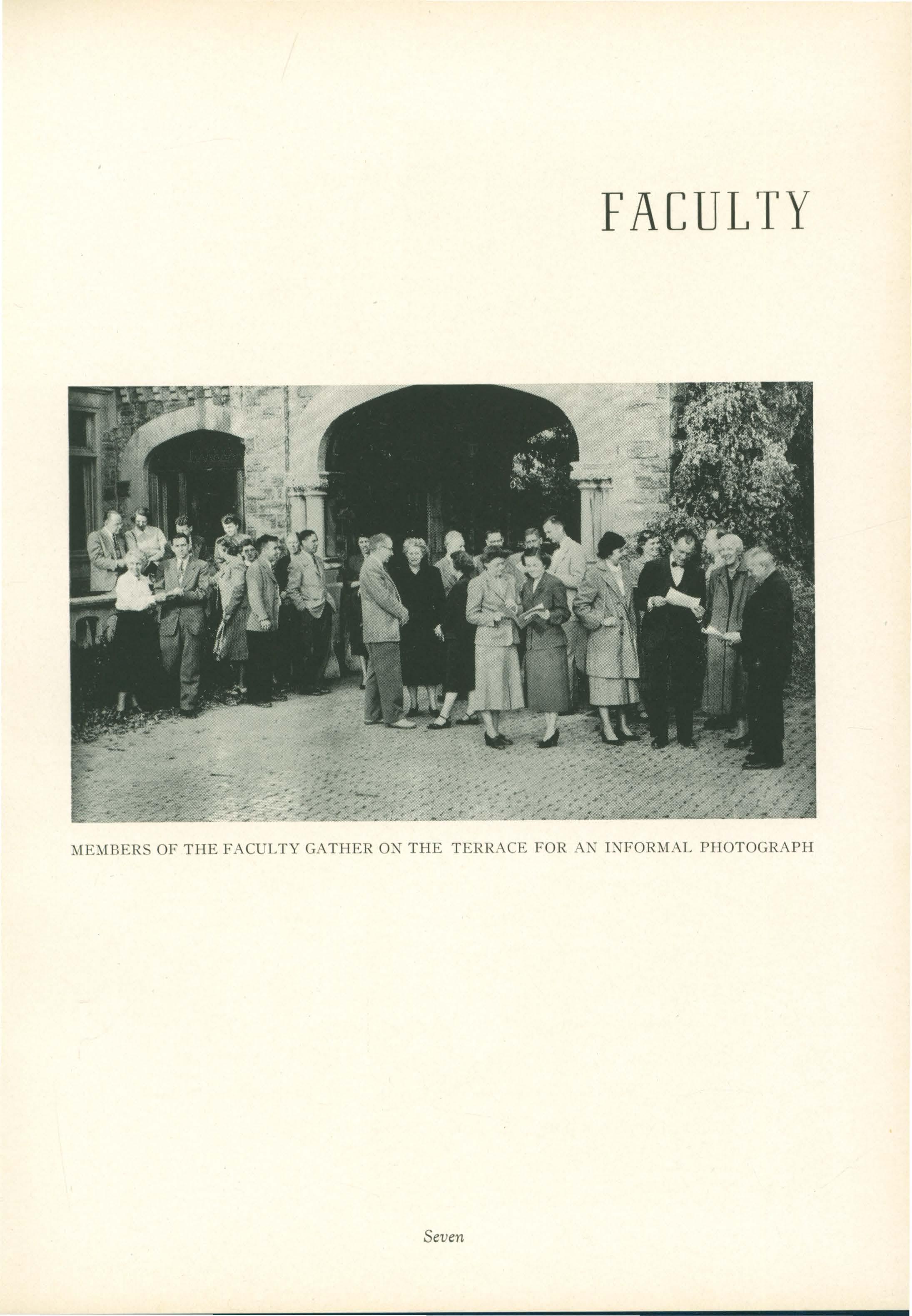 MEMBERS OF THE FACULTY GATHER ON THE TERRACE FOR AN INFORMAL PHOTOGRAPH