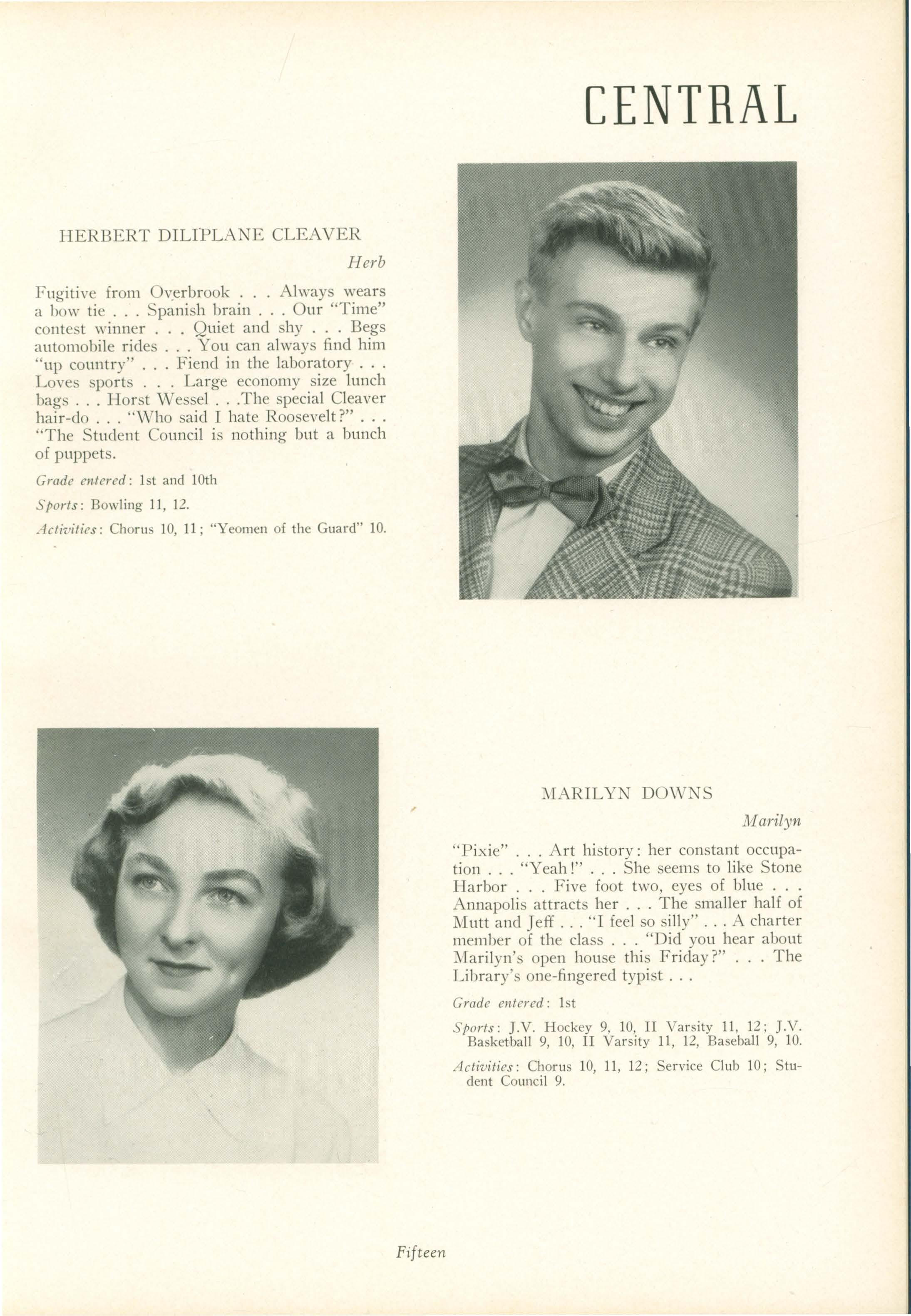 Bill. And then we were sophomores. Herbert Cleaver worked out his efficiency system on how to take short cut doing homework, and Harry Roeder came chugging up the driveway in "Delilah'' expounding his political theories.