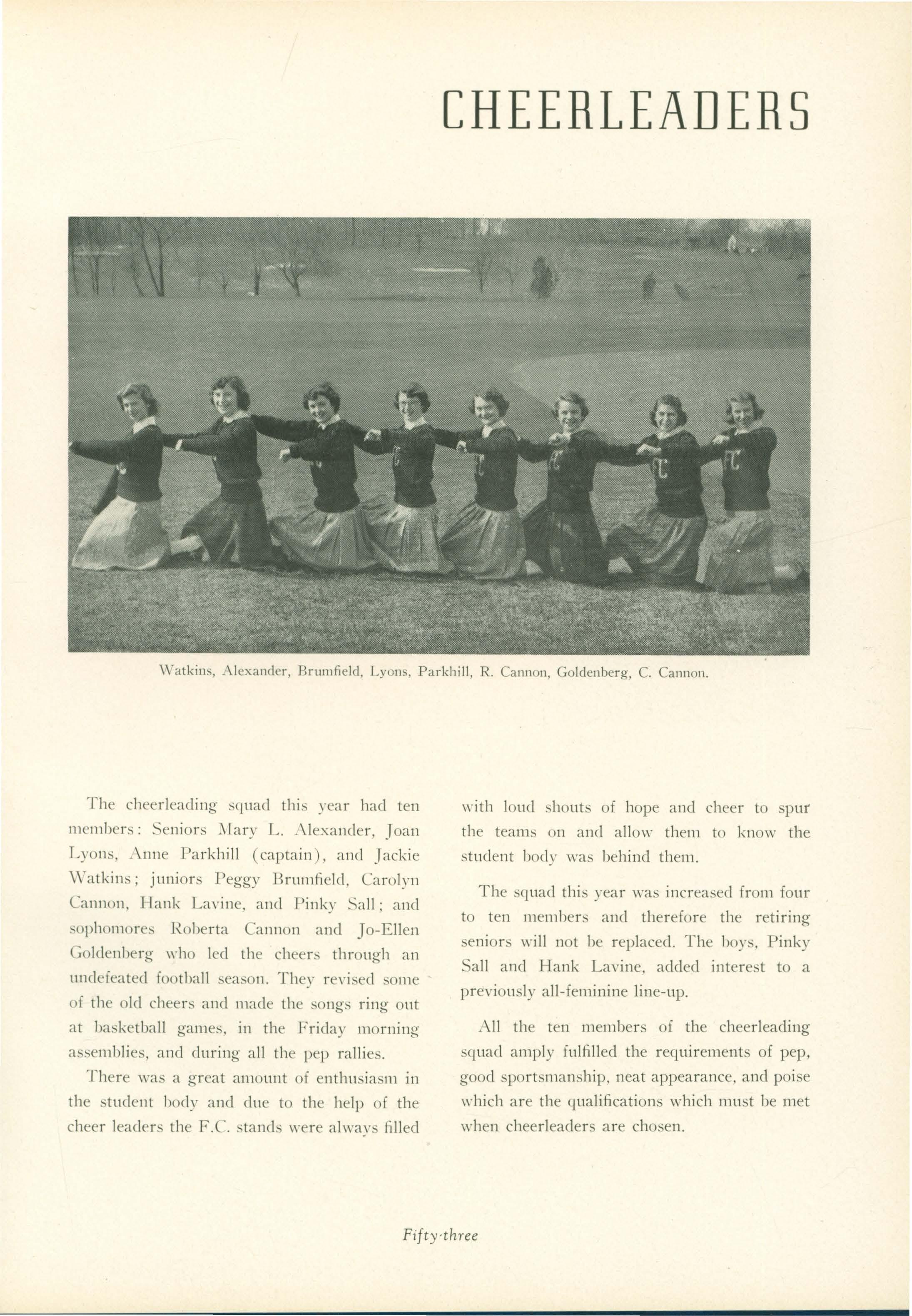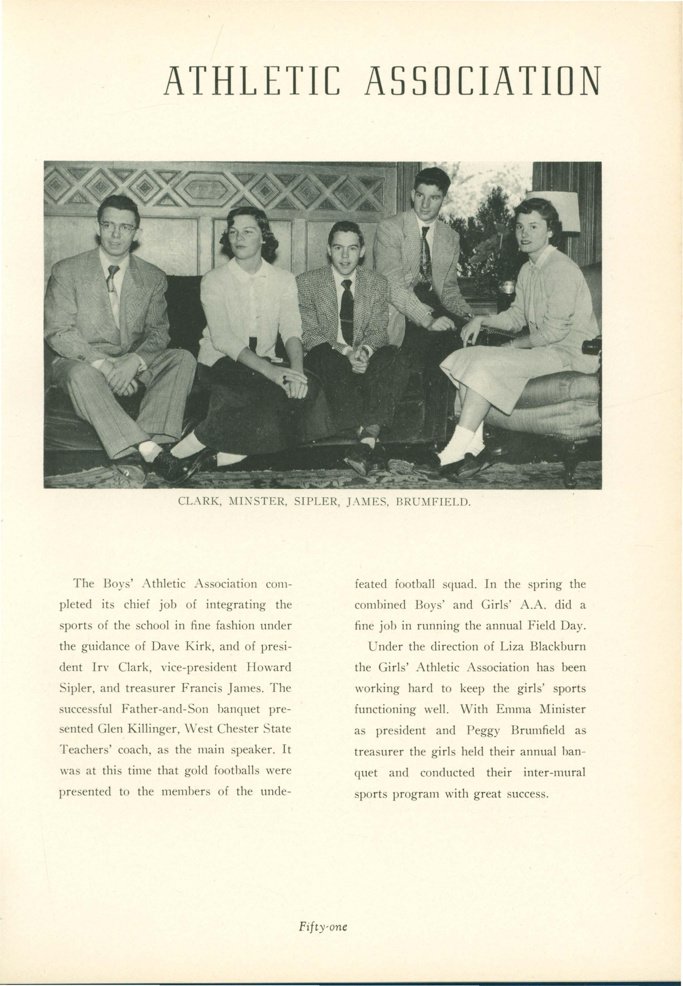 The boys winning their J.V. letters ,,·ere Don Ellis. Brinton Eichert. George Garrett, Charlie Linton, Alan 1\Iitosky. and Pincus Sail. The girls winning their J.V. letters ,,·ere Terry Elsom, Joyce Hinton. Emma l\Iinster, Be,·erly Sieta Van Zan ten, and J etta Sommers.