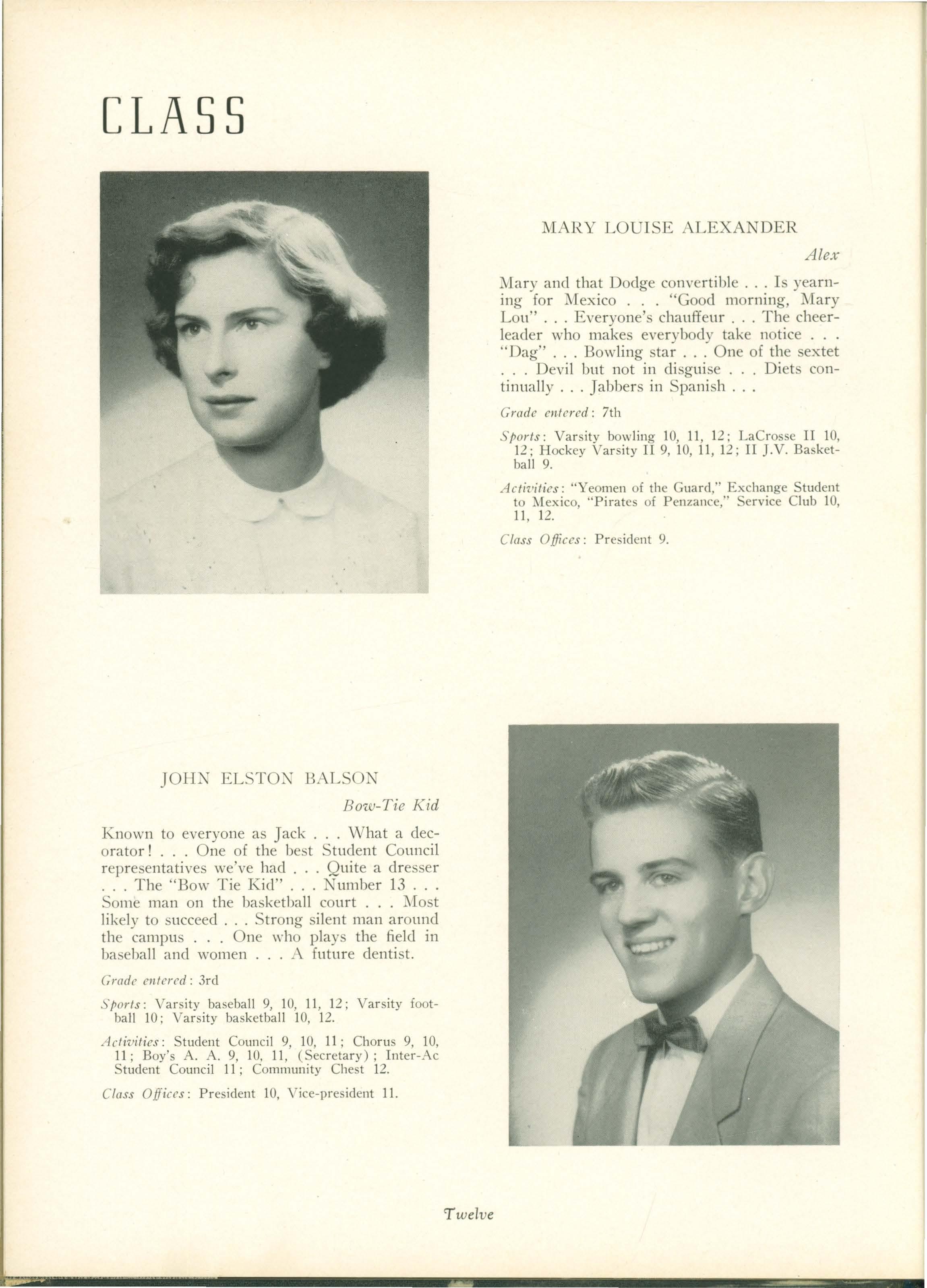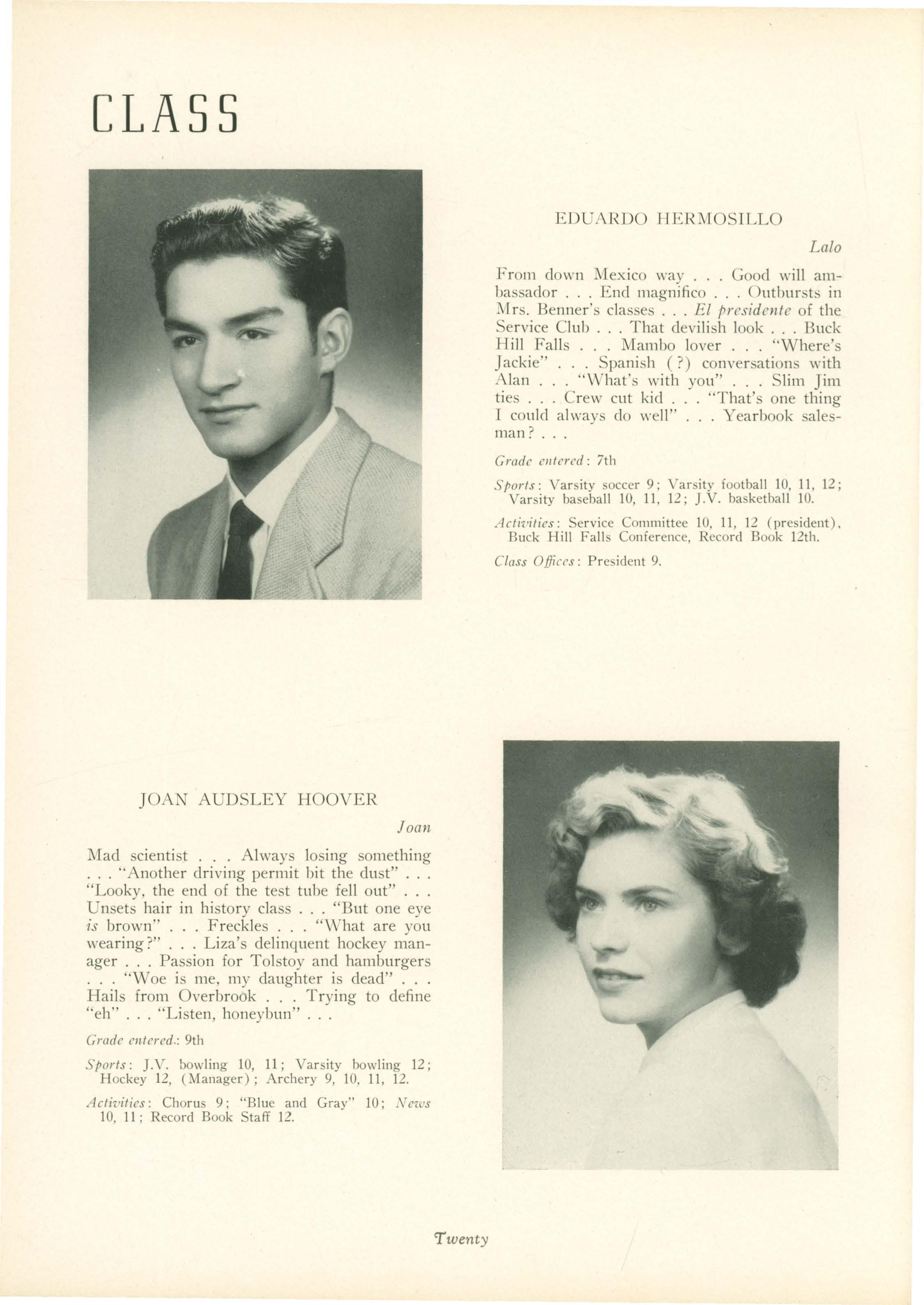 Acti'1!ities: "Yeomen of the Guard," Exchange Student to Mexico, "Pirates of Penzance," Service Club 10, 11, 12.