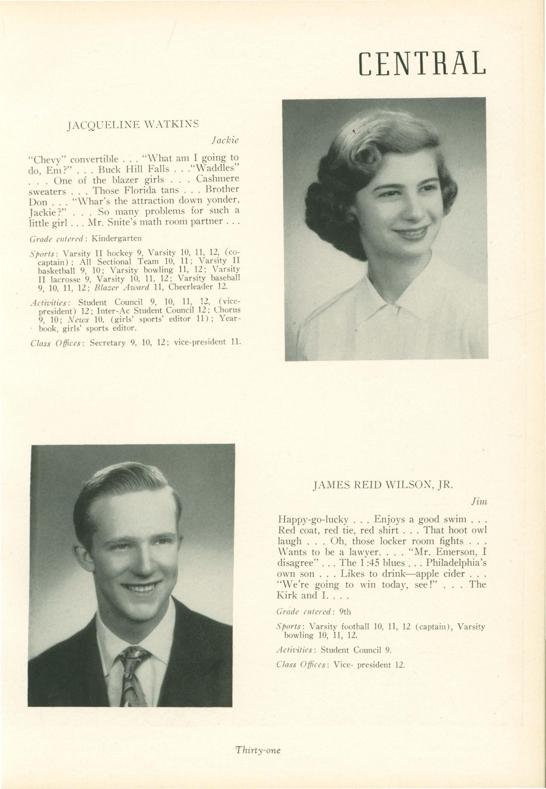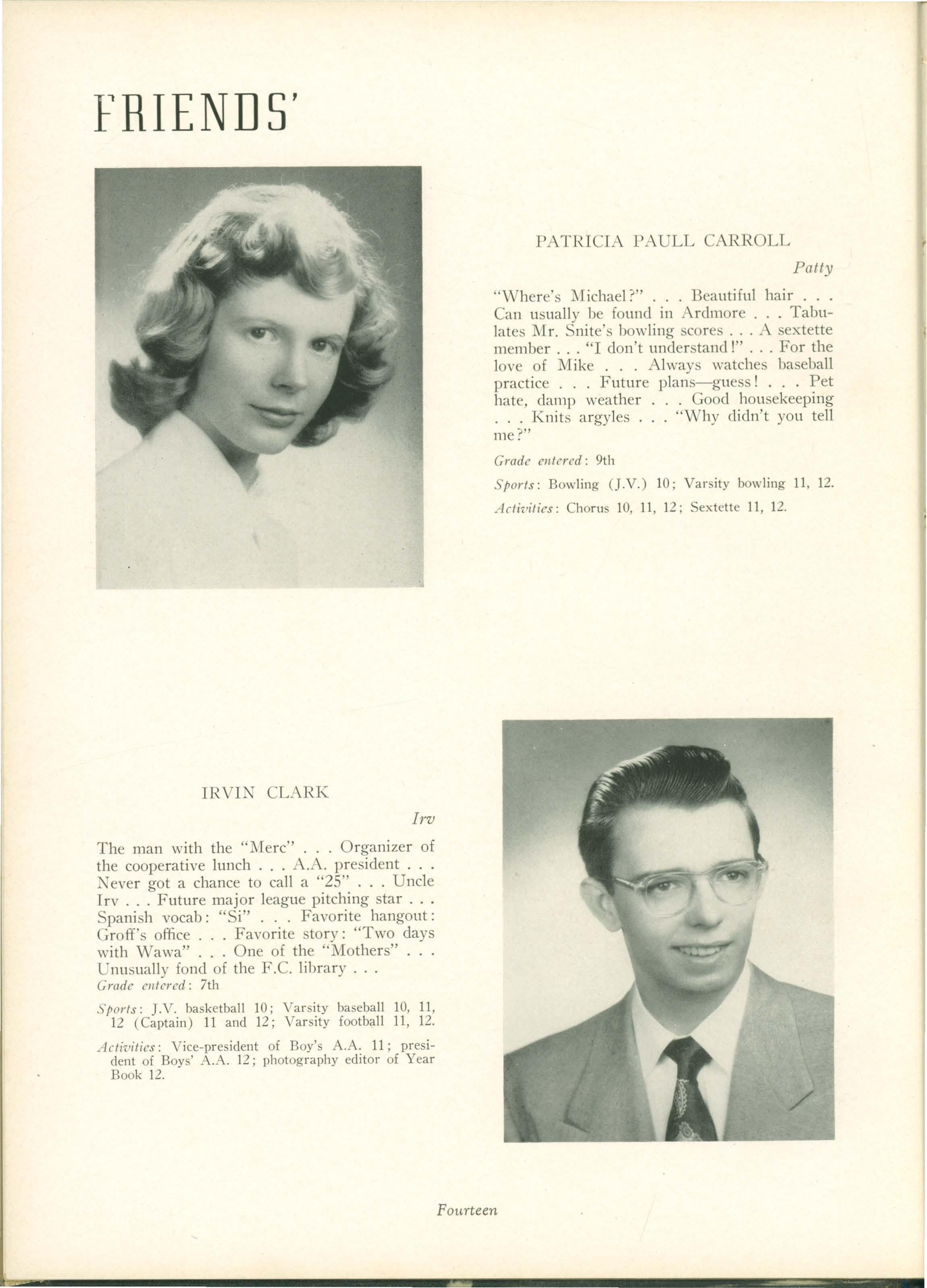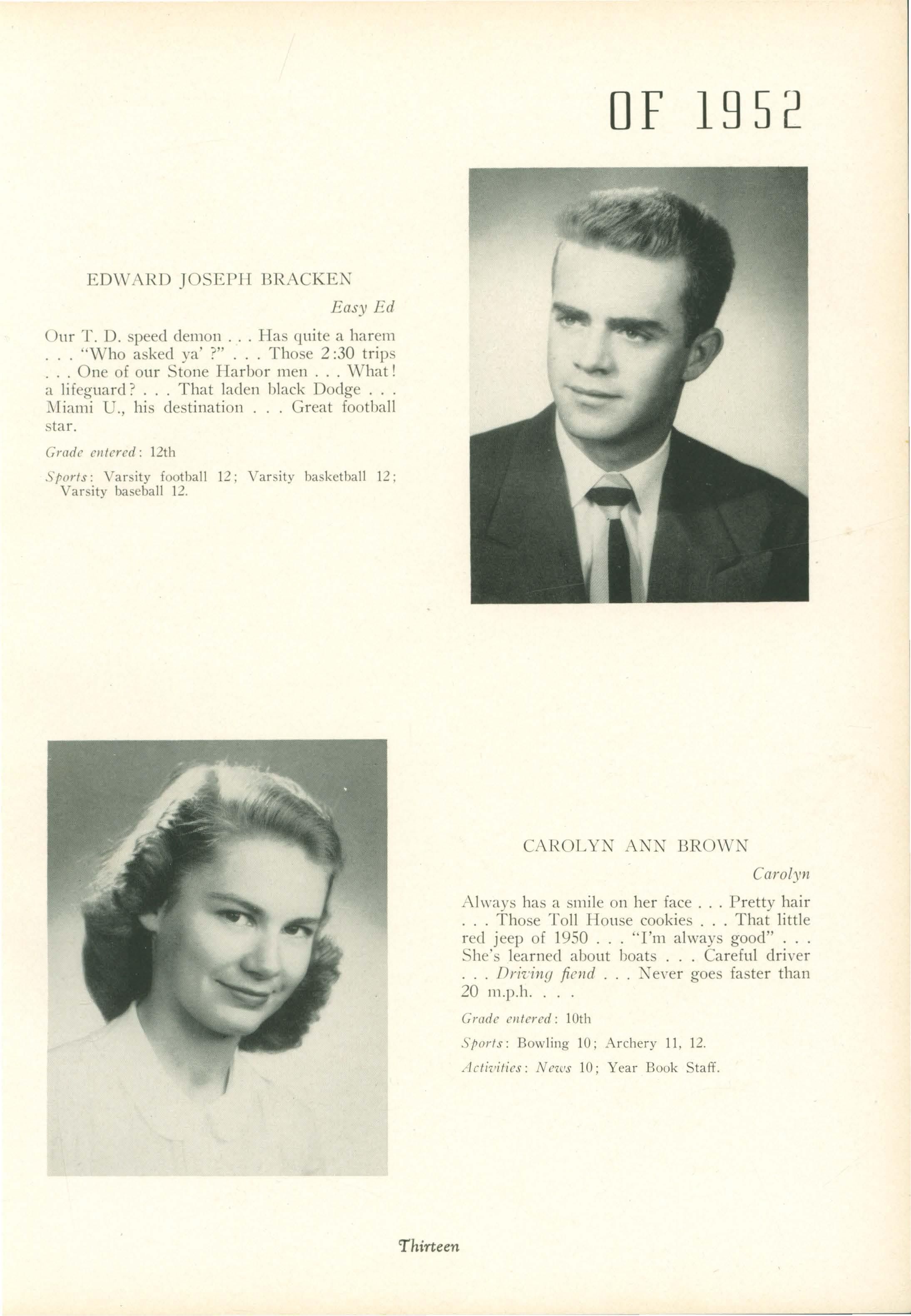 Bill. Ninth grade was really a wild year; all the teachers will agree to that. But Jim 'vVilson put that wilclnes to ome advantage as captain of our 1951 undefeated football team. Patty Carroll has turned out to be quite a woman of the "·orld. She captivates all the boys with her innocent stare.