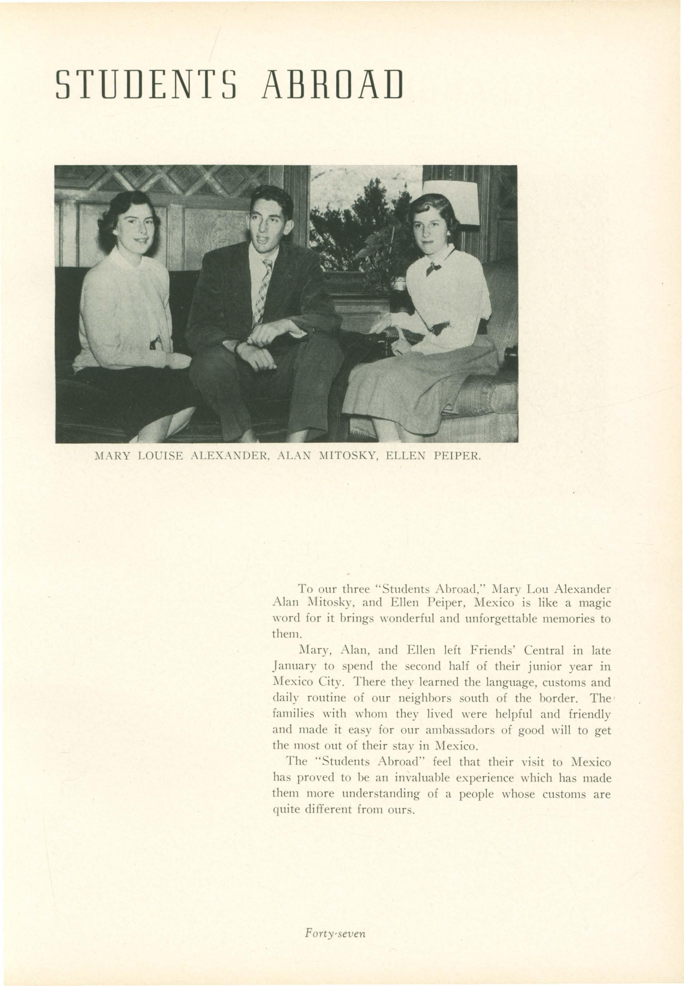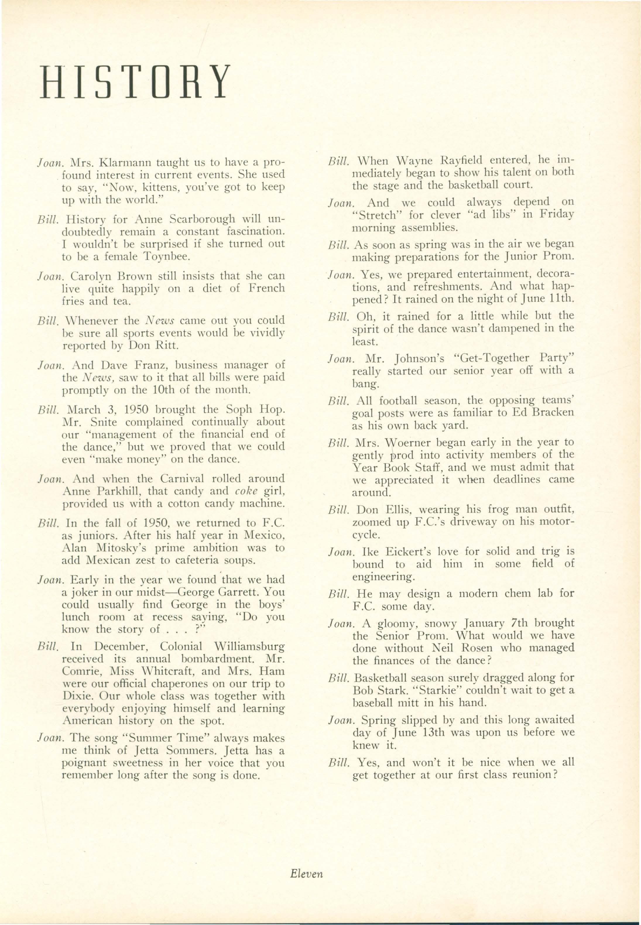 Bill. In the fall of 1950, we returned to F.C. as juniors. After his half year in 1\Iexico, Alan l\Iitosky's prime ambition was to add Mexican zest to cafeteria soups.