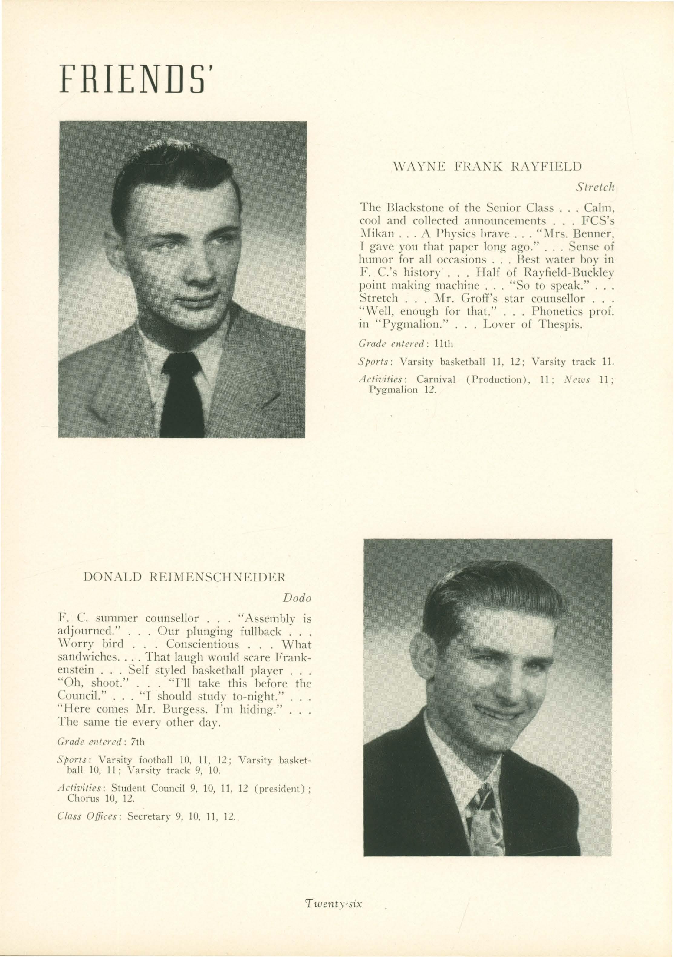 Bill. \iVhen Wayne Rayfield entered, he immediately began to show his talent on both the stage and the basketball court.