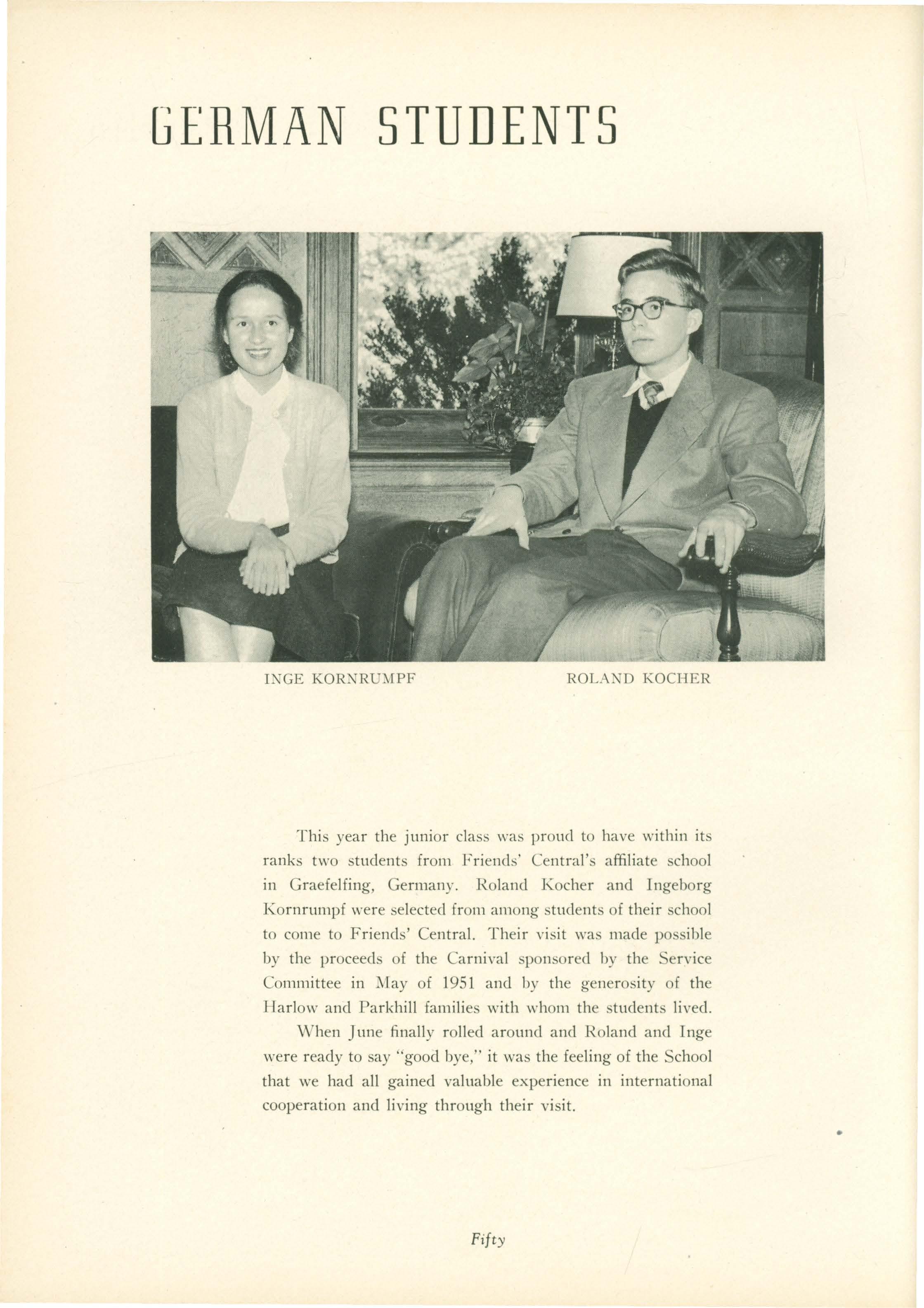 POSITION WITH THE AMERICAN FRIENDS' SERVICE COMMITTEE IN PARIS, FRANCE , WE WISH HIM TO KNOW THAT HE CARRIES WITH HIM THE BEST WISHES OF THE MEMBERS OF THE CLASS OF ' 52.