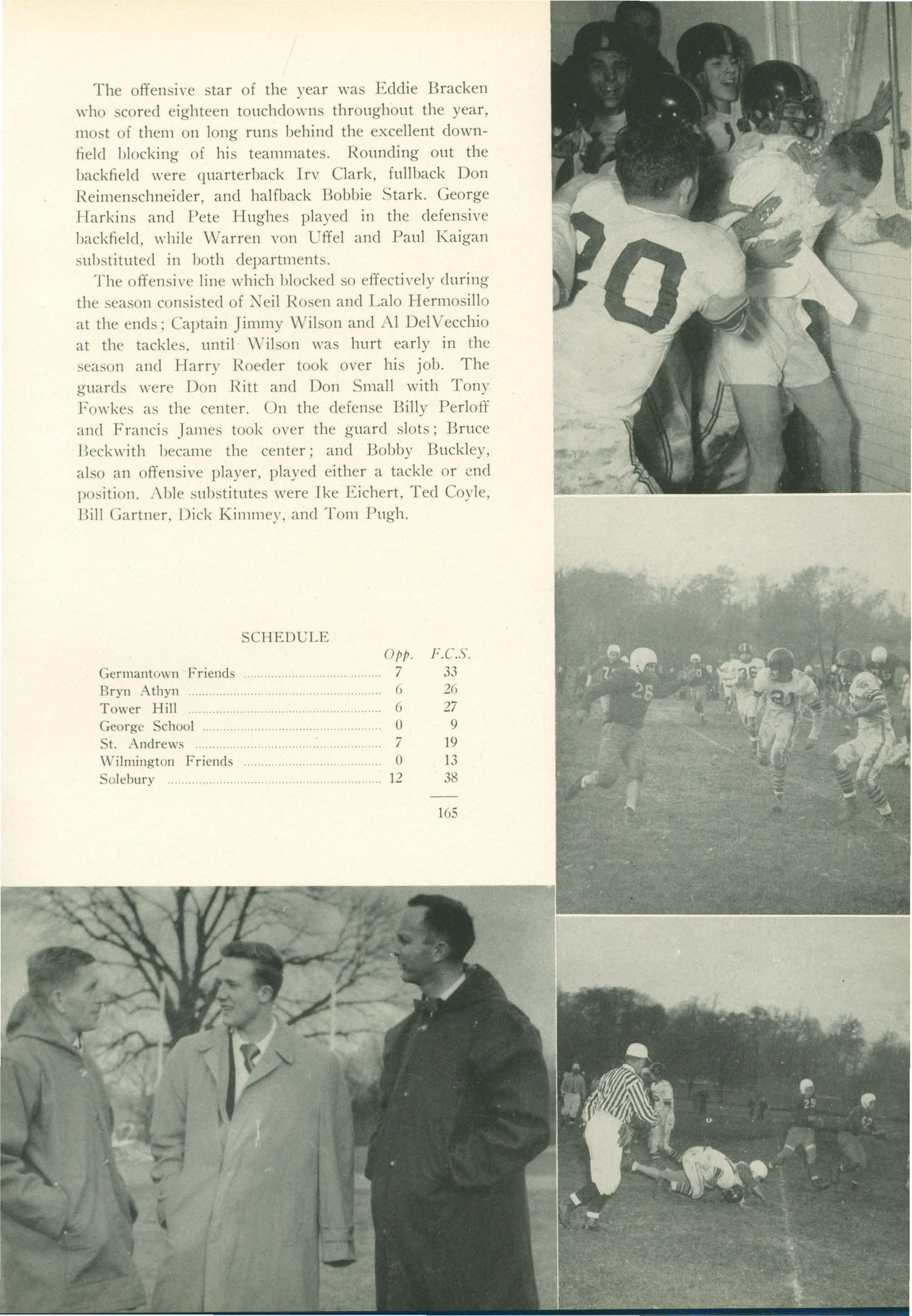 Captain Irv Clark, one of the best pitchers ever on a Friends' Central team, and )J eil Rosen will do the pitching. Mike Harlow and AI DelVecchio are battling for the catching position. In the infield first base is a toss up between Dave 1-lepner and Tony Fowkes, Jack