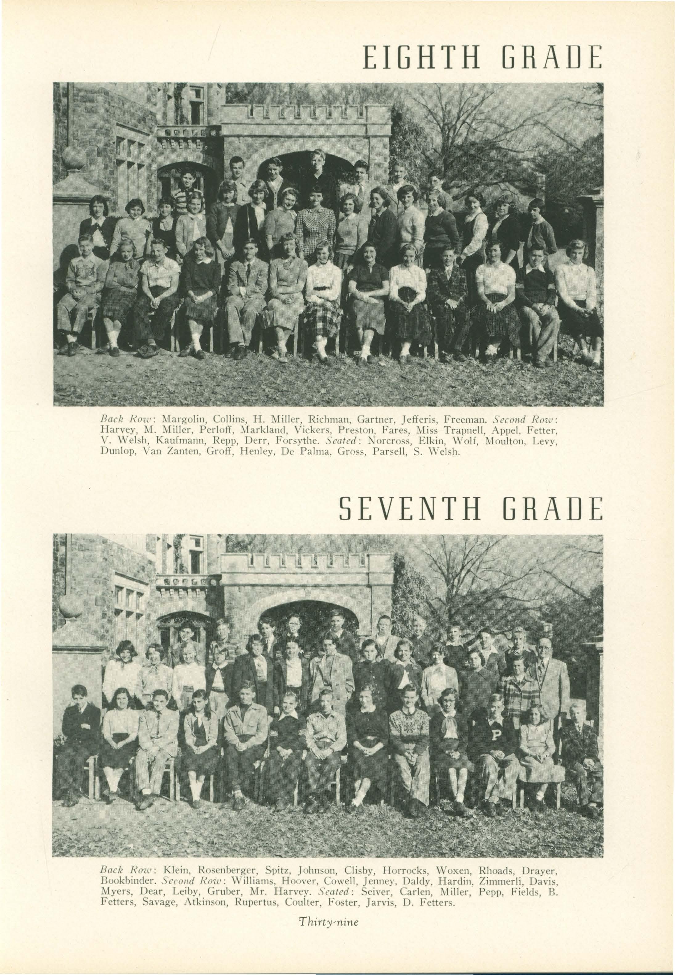 Joan. Our class really grew in seventh grade. Editor E. B. Hudock, alias General Hardnails, and Geo Harkins, that potential AI Capp, joined the ranks.