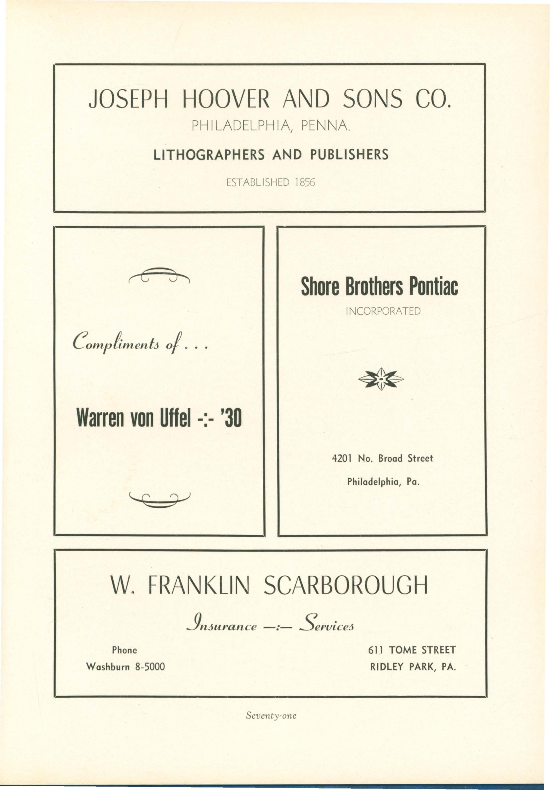 Warren von Uffel -:- '30 4201 No Brood Street Philadelphia, Po.