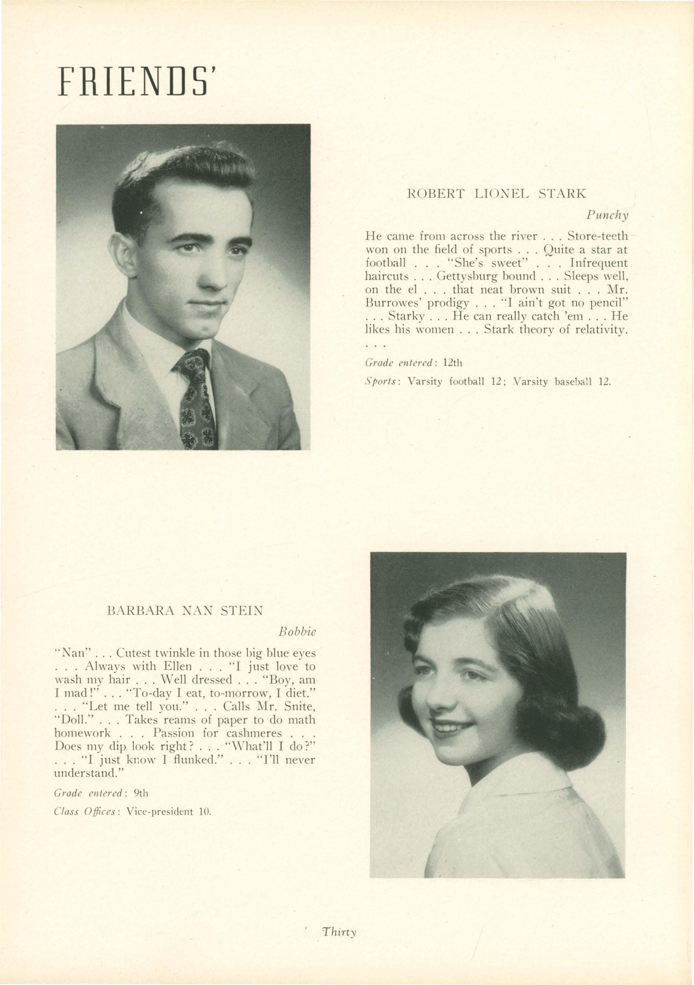 Bill. Barbara Stein talked about her dissection of the frog all year. I wouldn't be surpri eel if she turned out to be an eminent biologist.