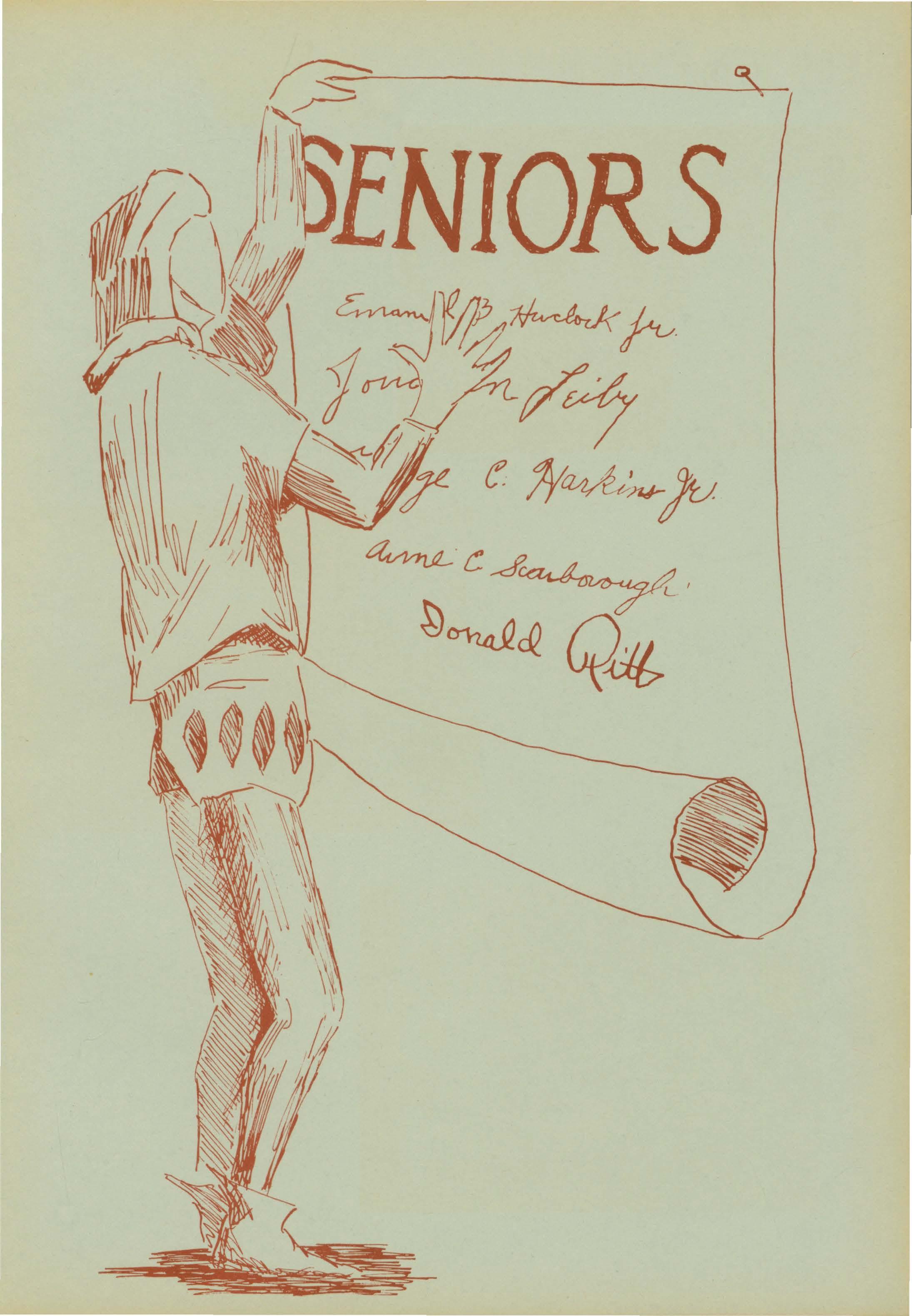 The man with the "l\1erc" Organizer of the cooperative lunch ... A.A. president ... Never got a chance to call a "25" Uncle Irv Future major league pitching star Spani h vocab: "Si" ... Favorite hangout: Groff's office Favorite tory: "Two days with Wawa" ... One of the "Mothers" Unusually fond of the F.C. library