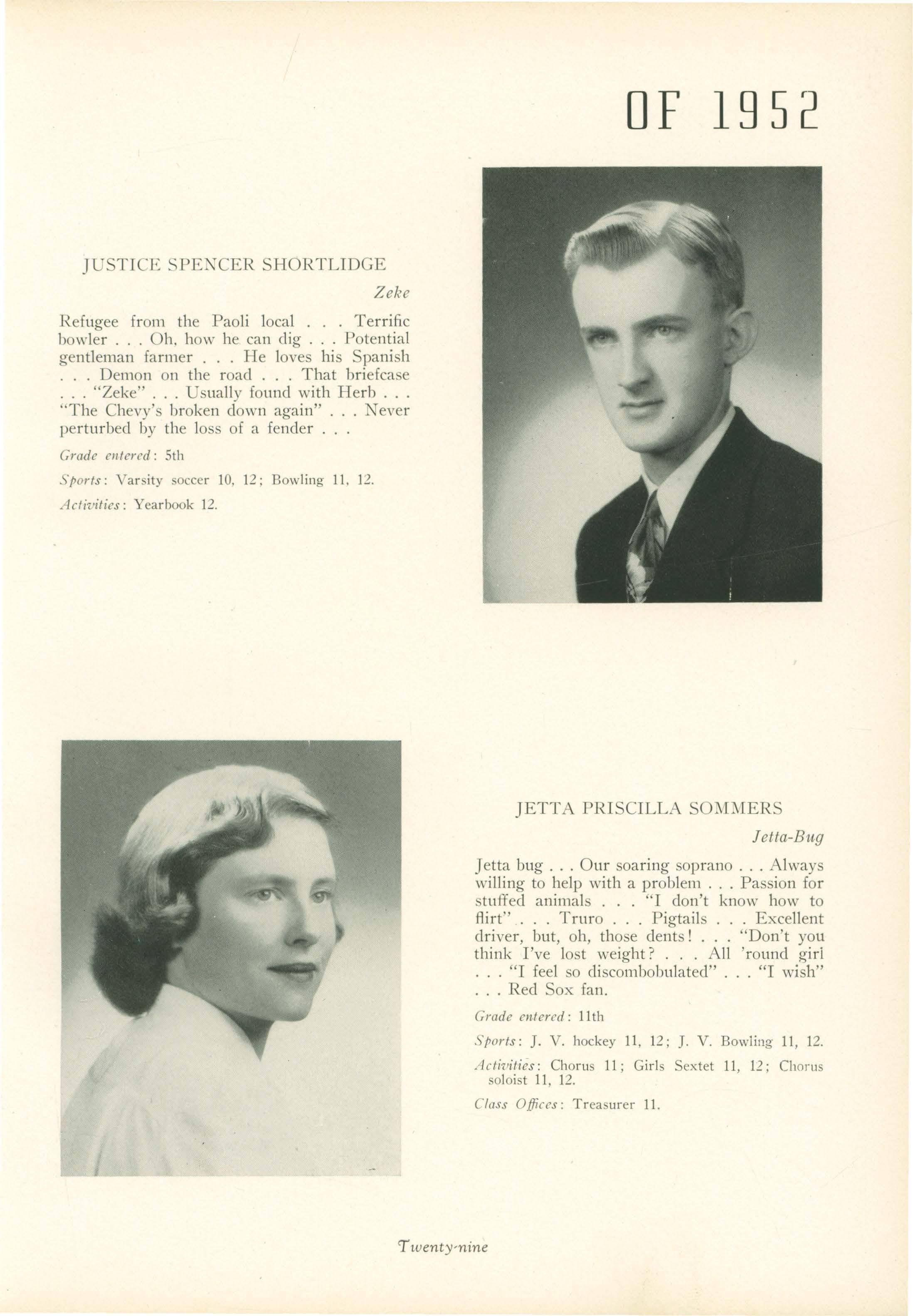 Bill. Emma Minster made her entrance in fifth grade as Becky Thatcher in our brilliant production of Huc!?!eberryFinn, and "Zeke" Shortlidge wandered in from Paoli.