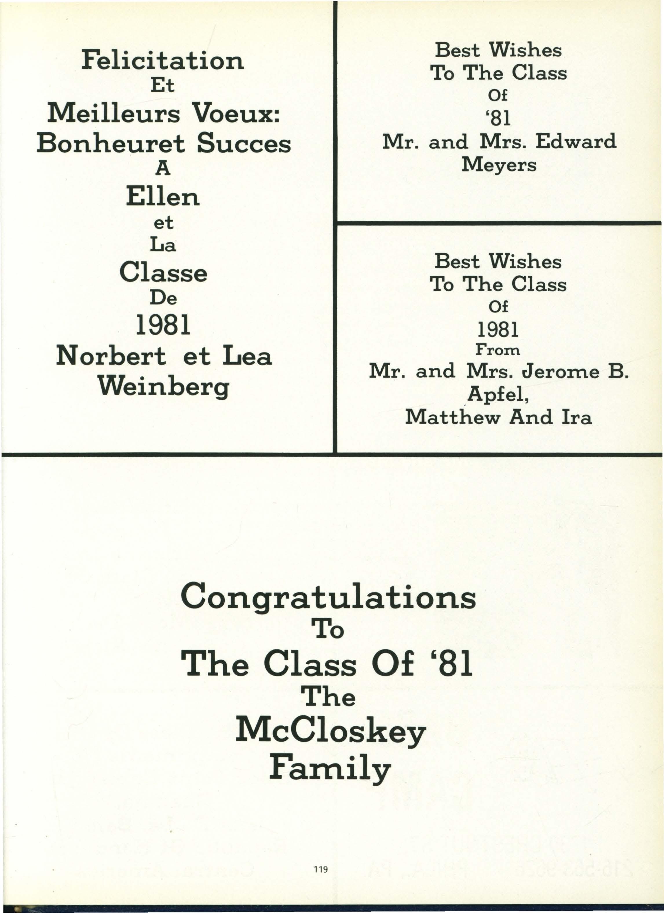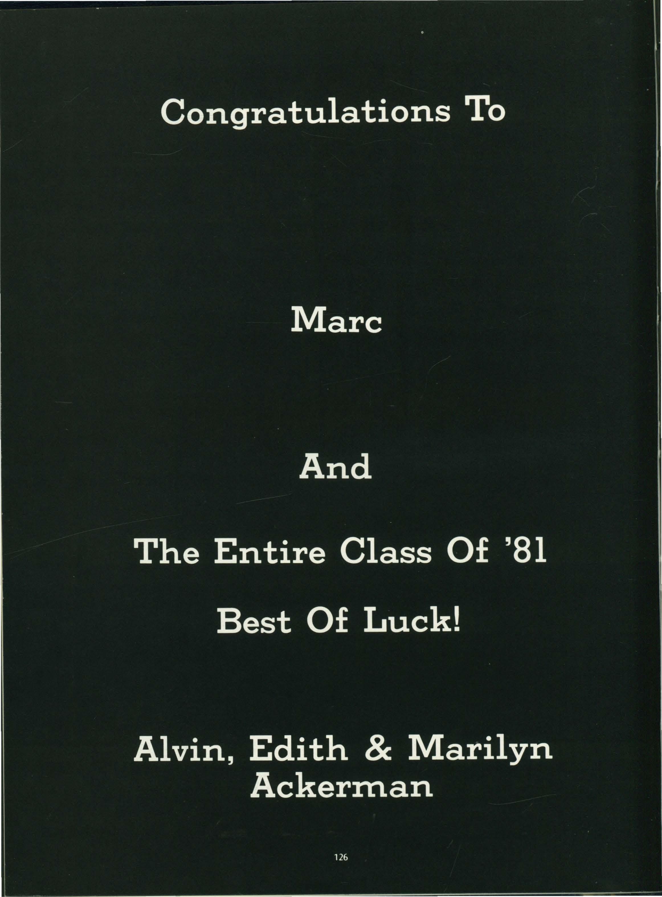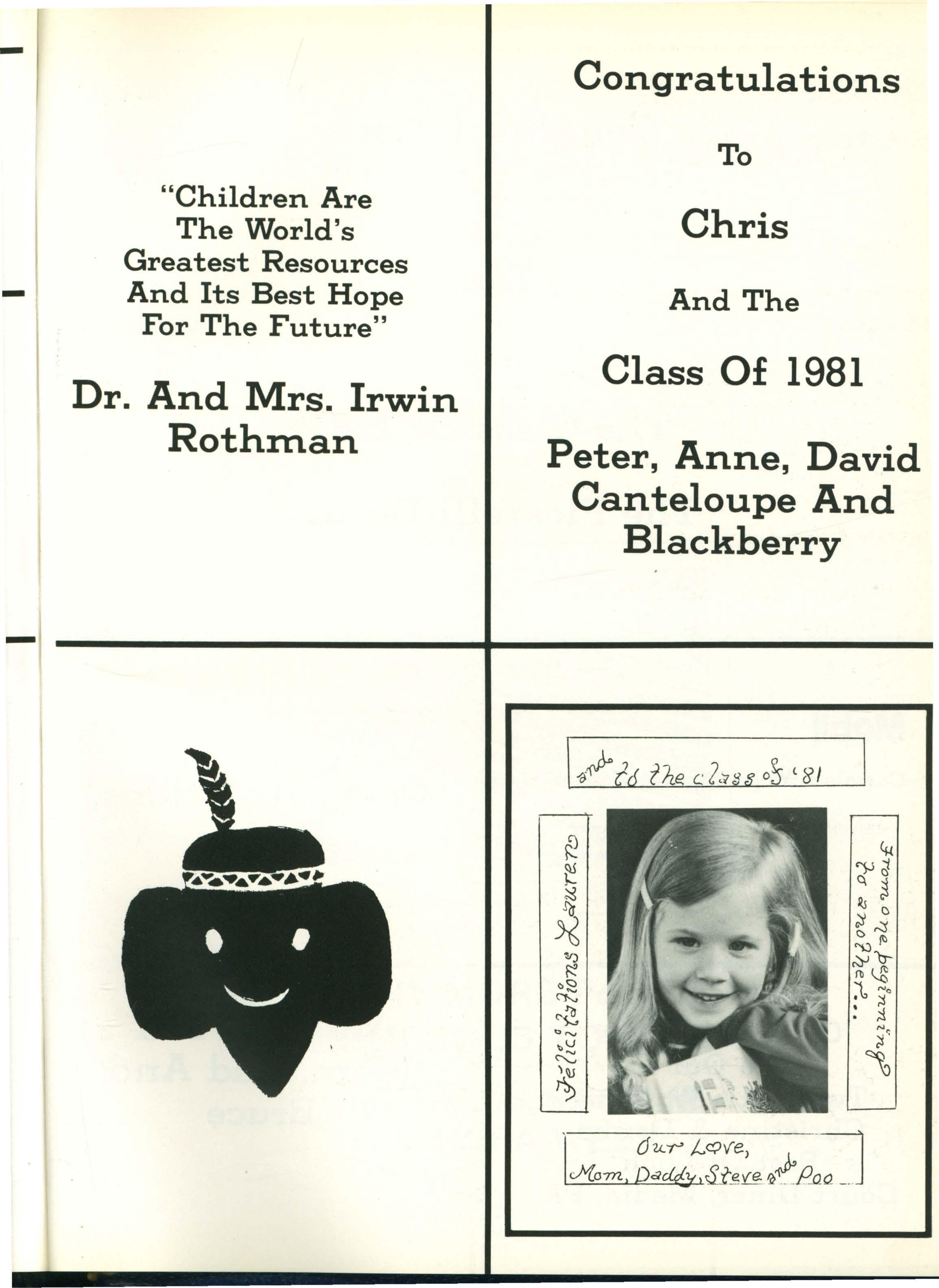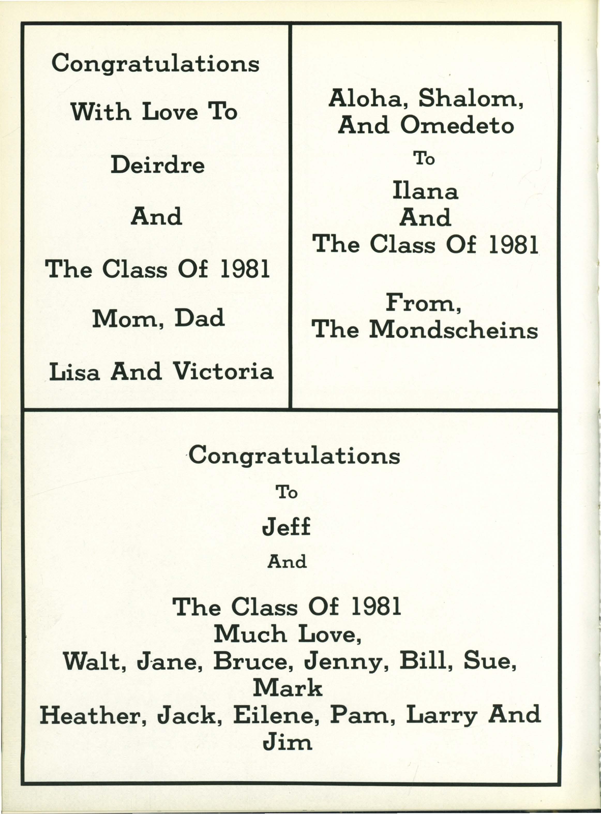 Best Wishes To The Class Of 1981 From Mr. and Mrs. Jerome B. Apfel, Matthew And Ira