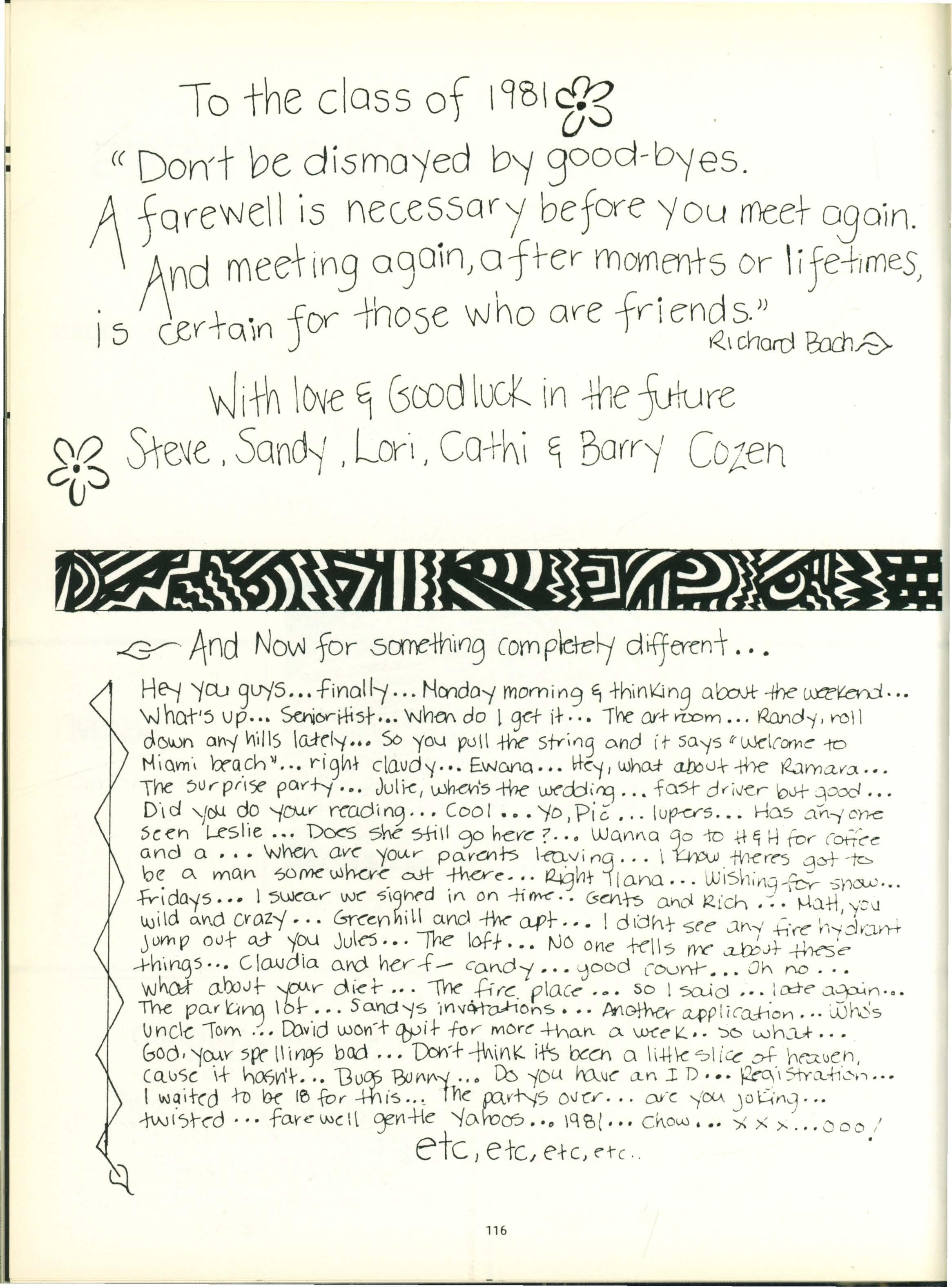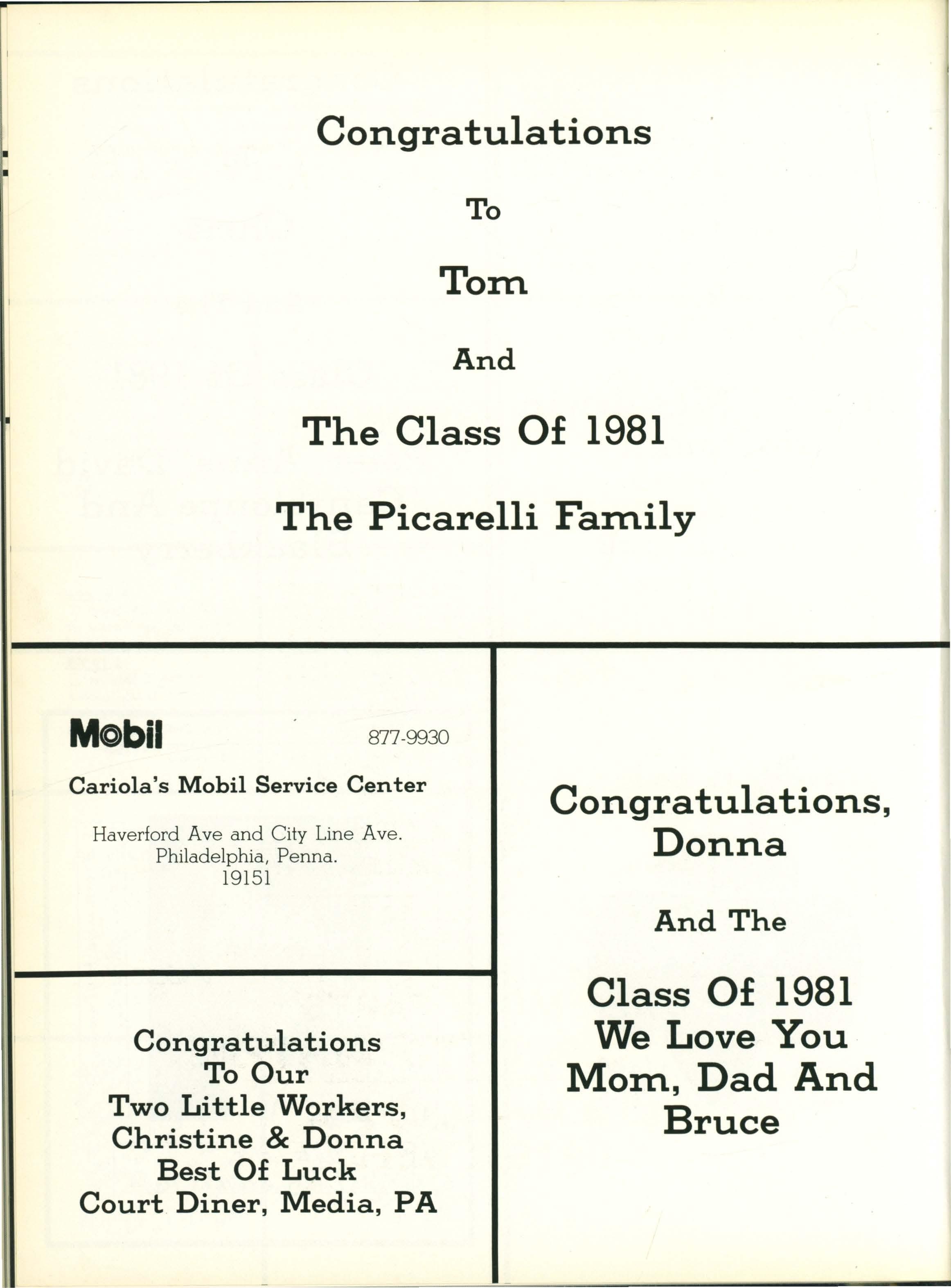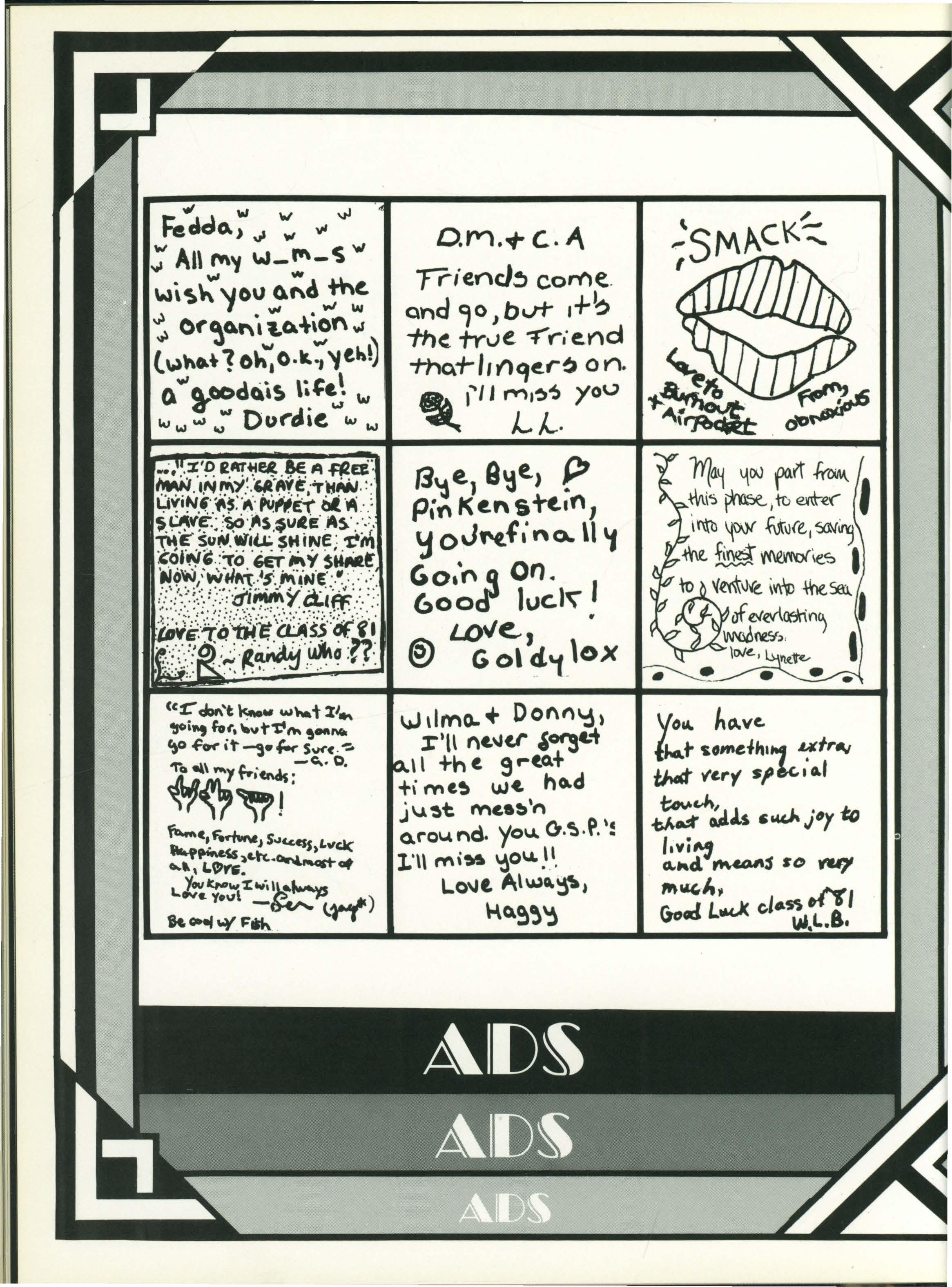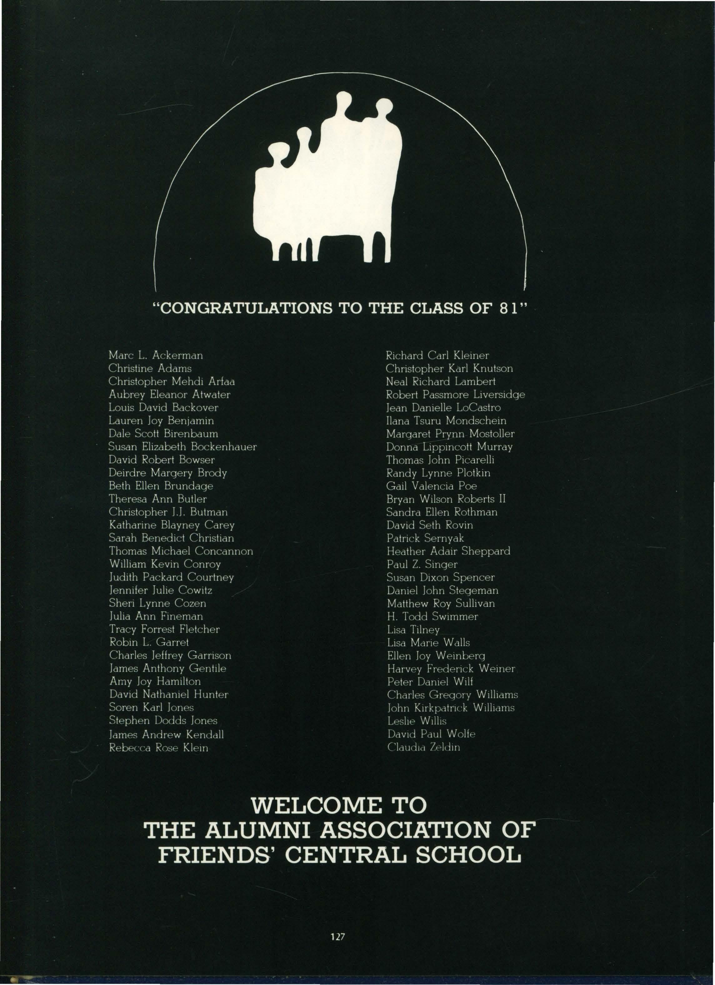 "CONGRATULATIONS TO THE CLASS OF 81"