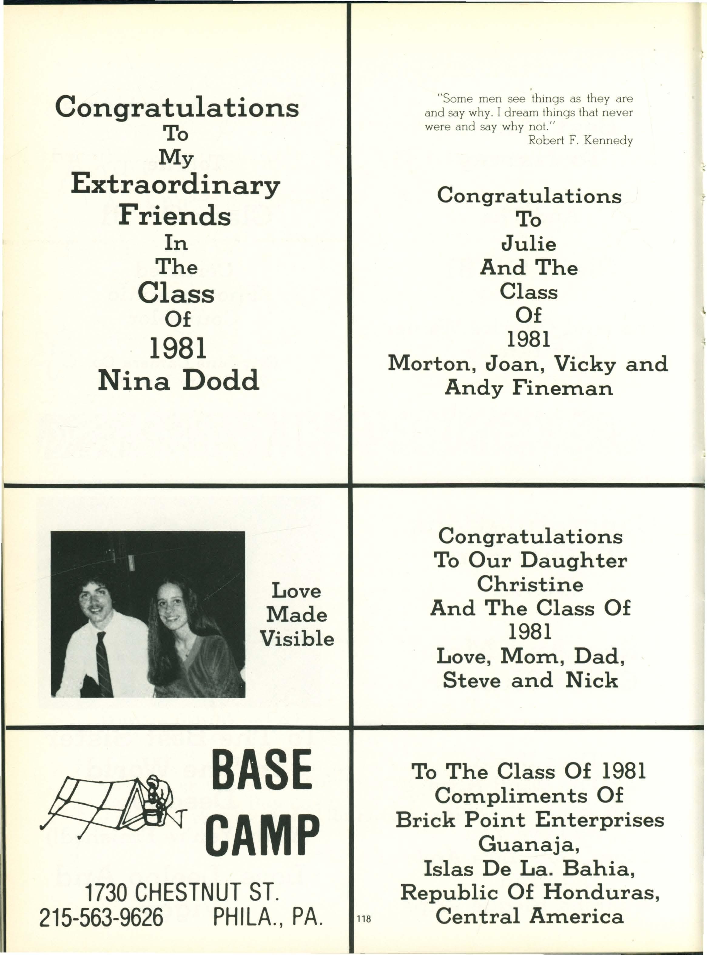 Congratulations, Good Wishes, And Love To Julie And The Class Of 1981 DR. and MRS.
