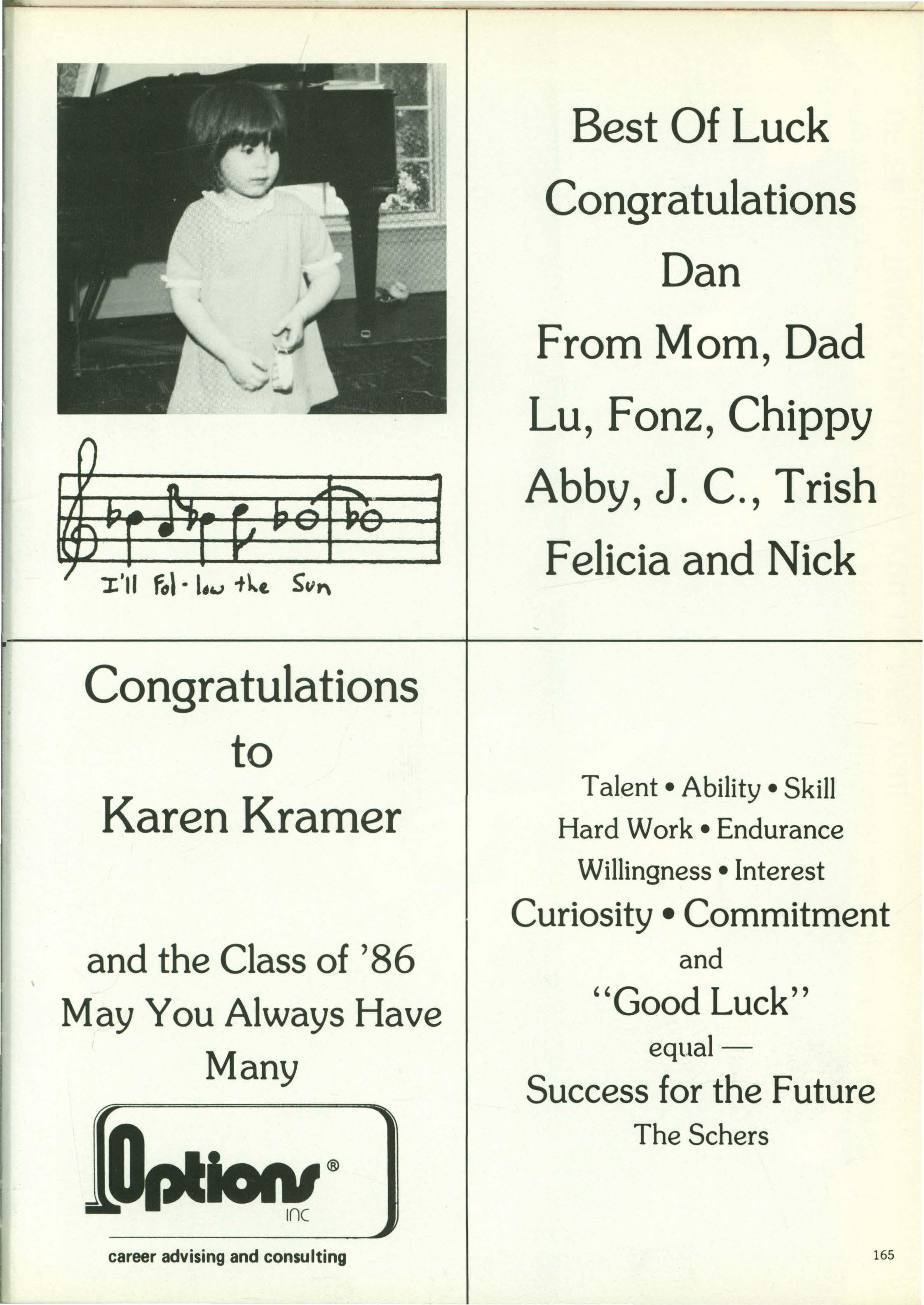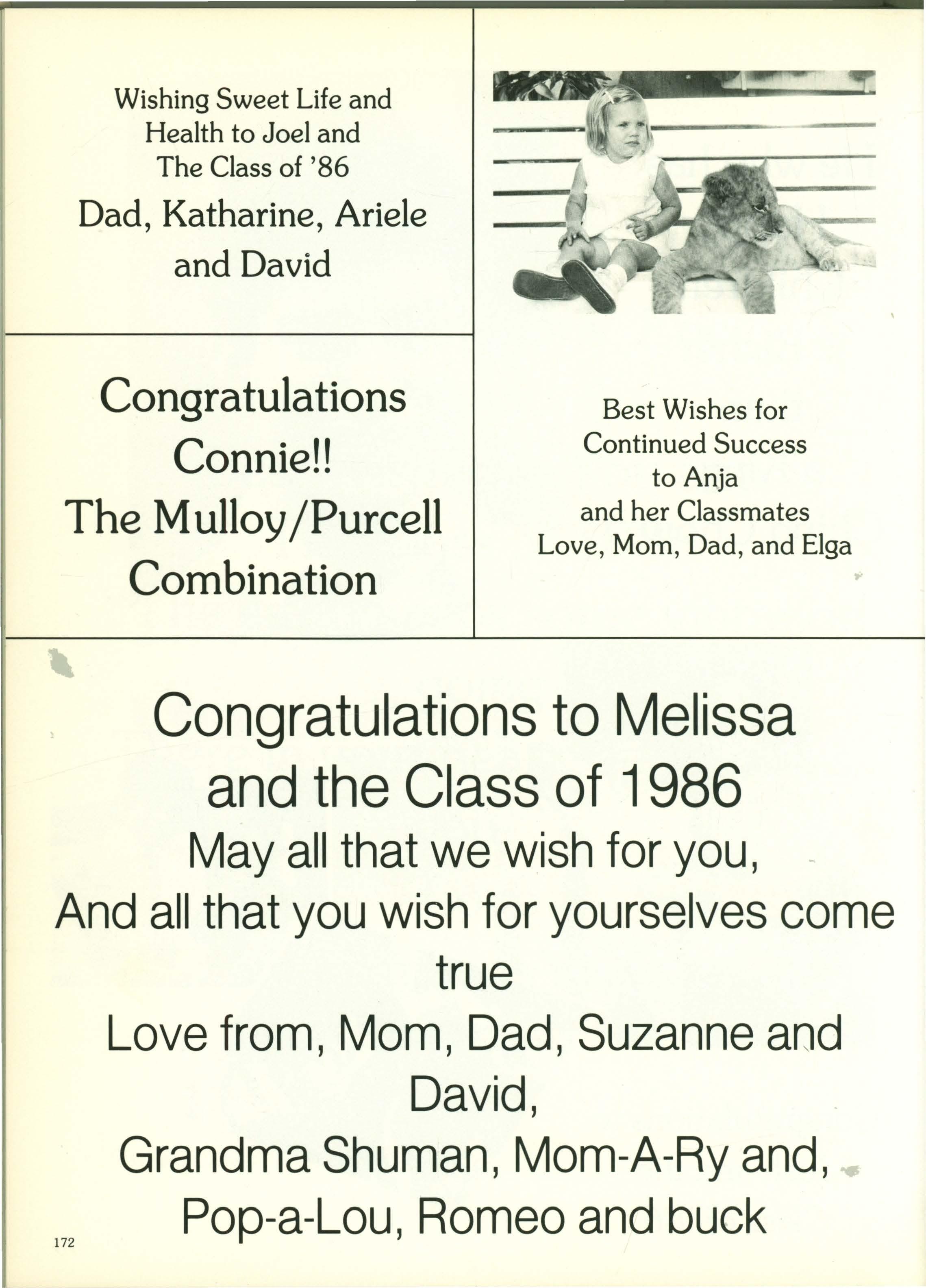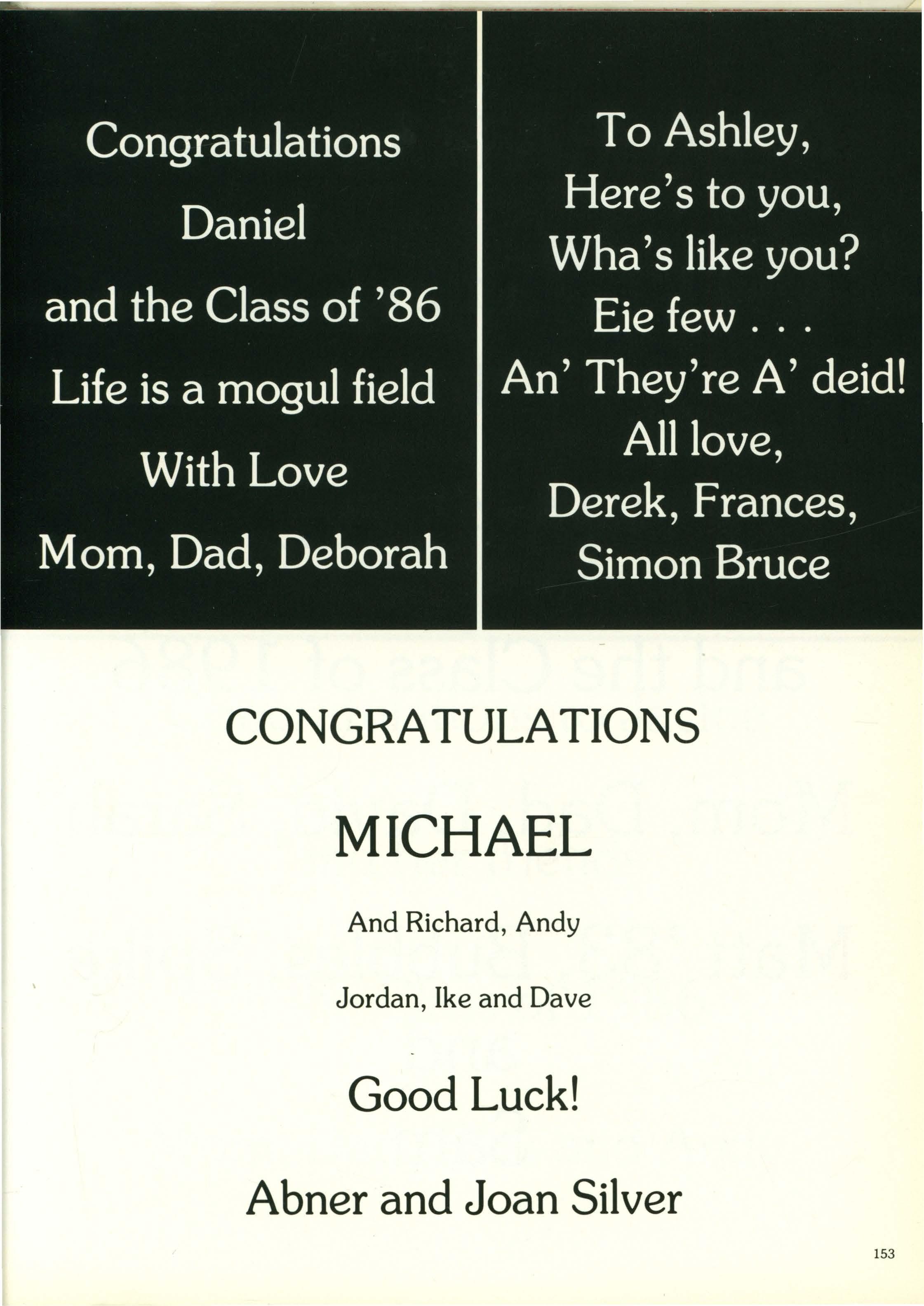 Congratulations Daniel To Ashley, Here's to you, Wha' s like you? Eie few ... and the Class of '86