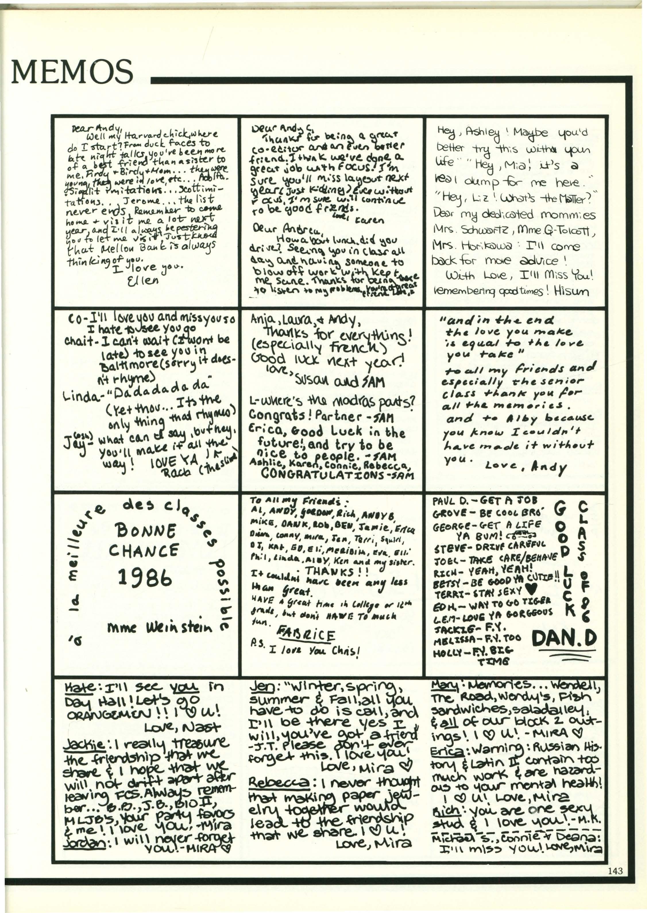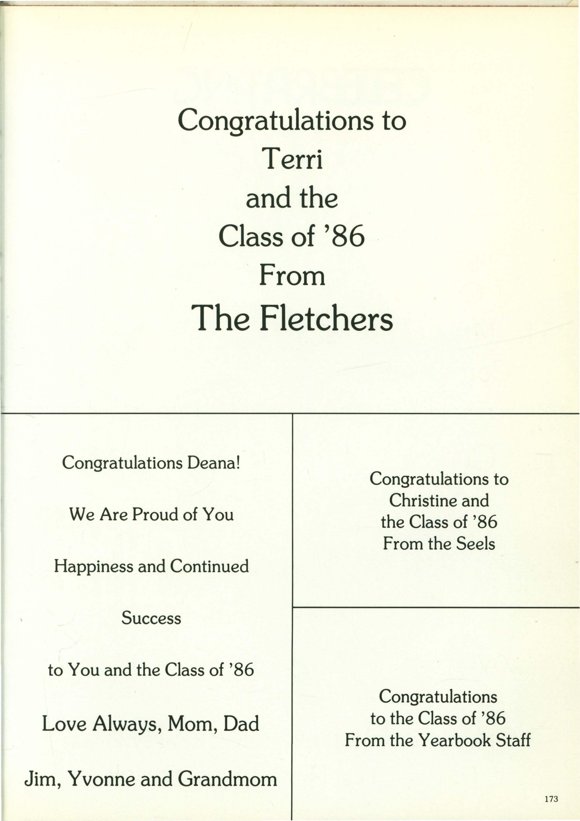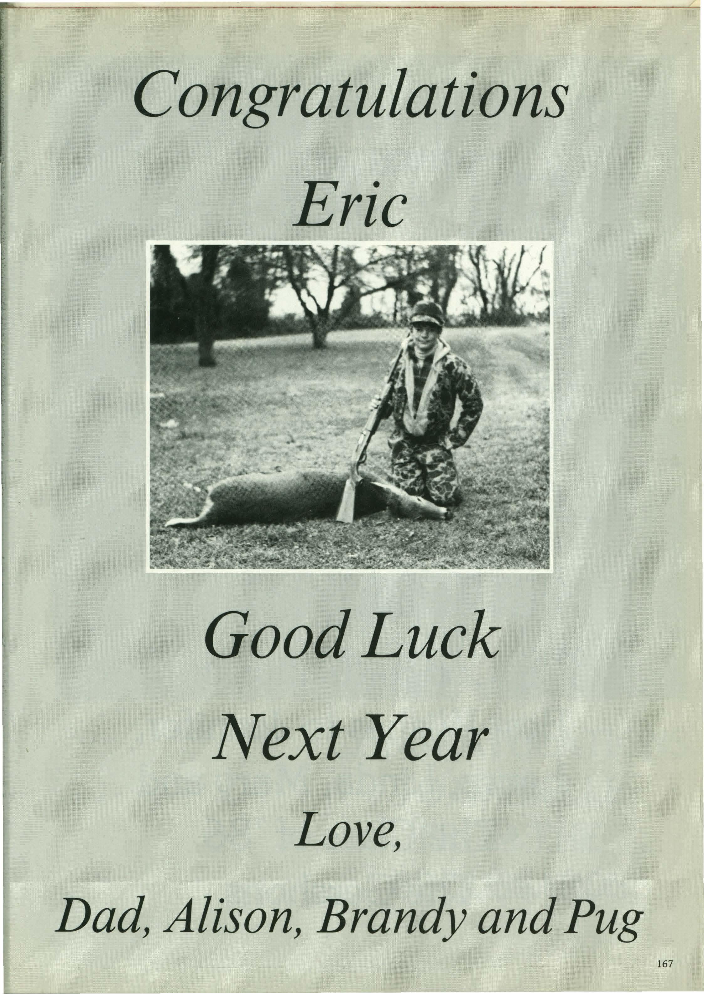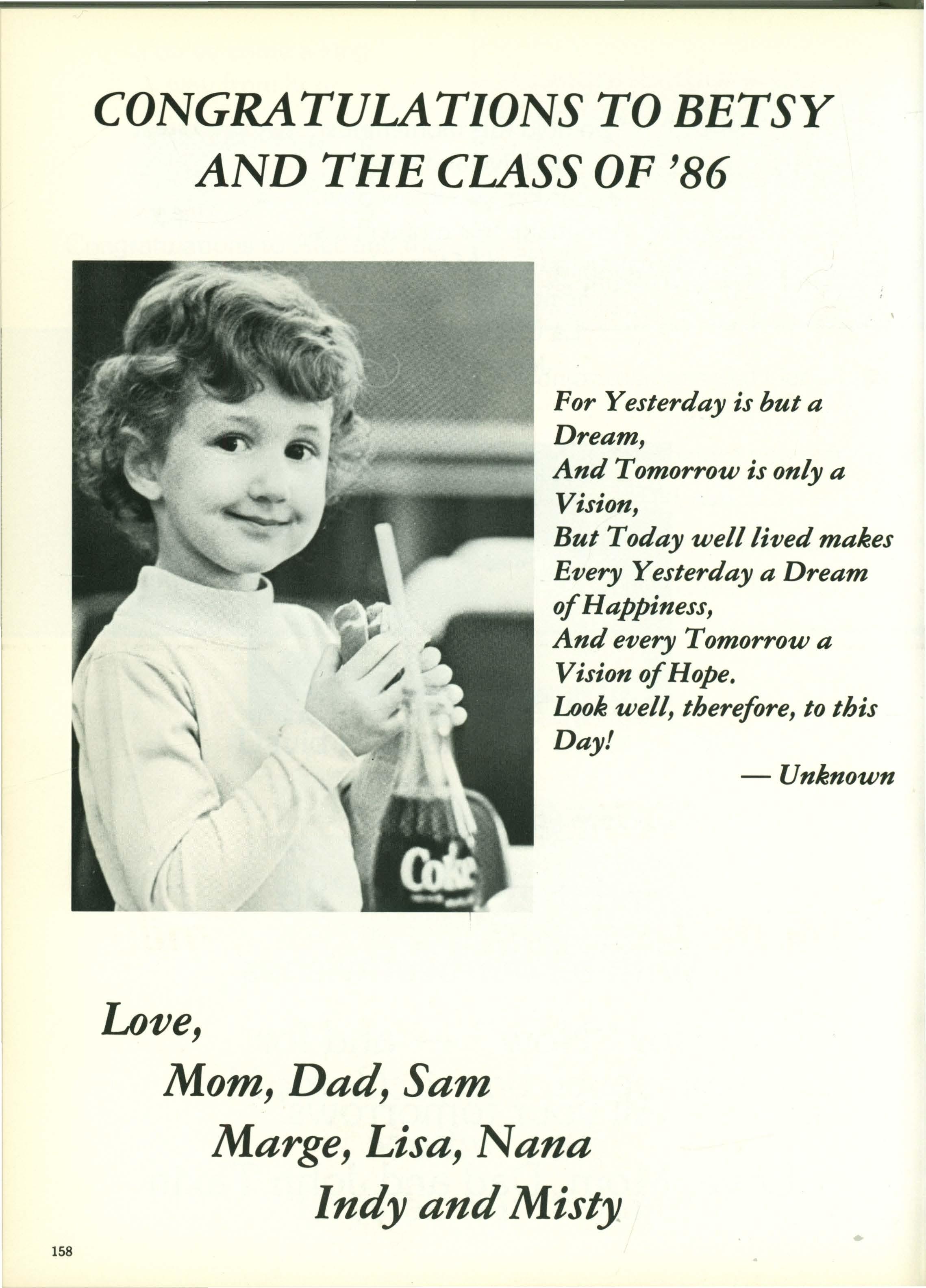 Congratulations Daniel To Ashley, Here's to you, Wha' s like you? Eie few ... and the Class of '86
