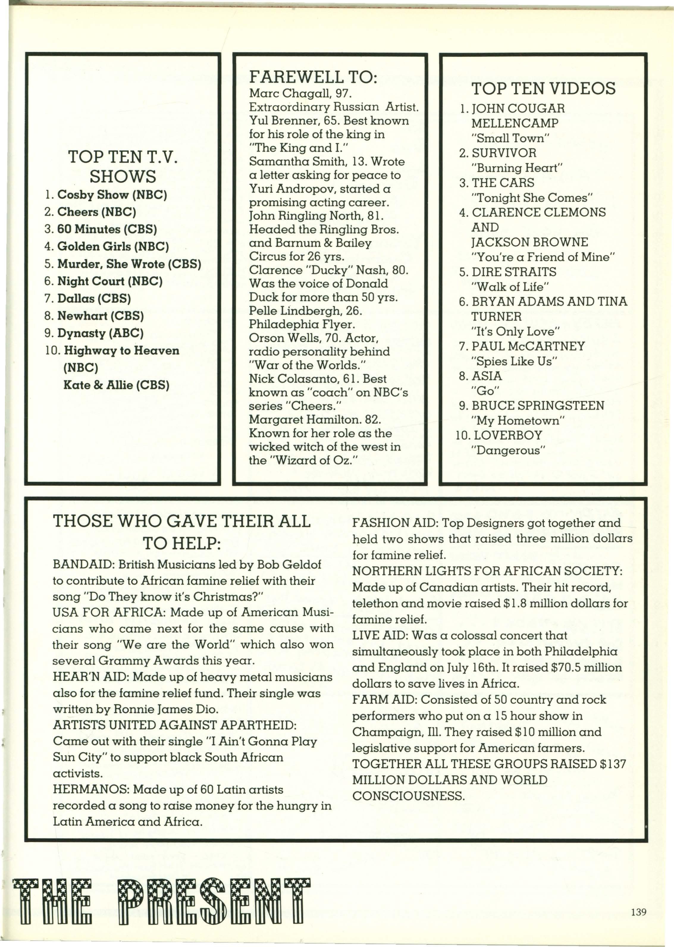 USA FOR AFRICA: Made up of American Musicians who came next for the same cause with their song "We are the World" which also won several Grammy Awards this year.