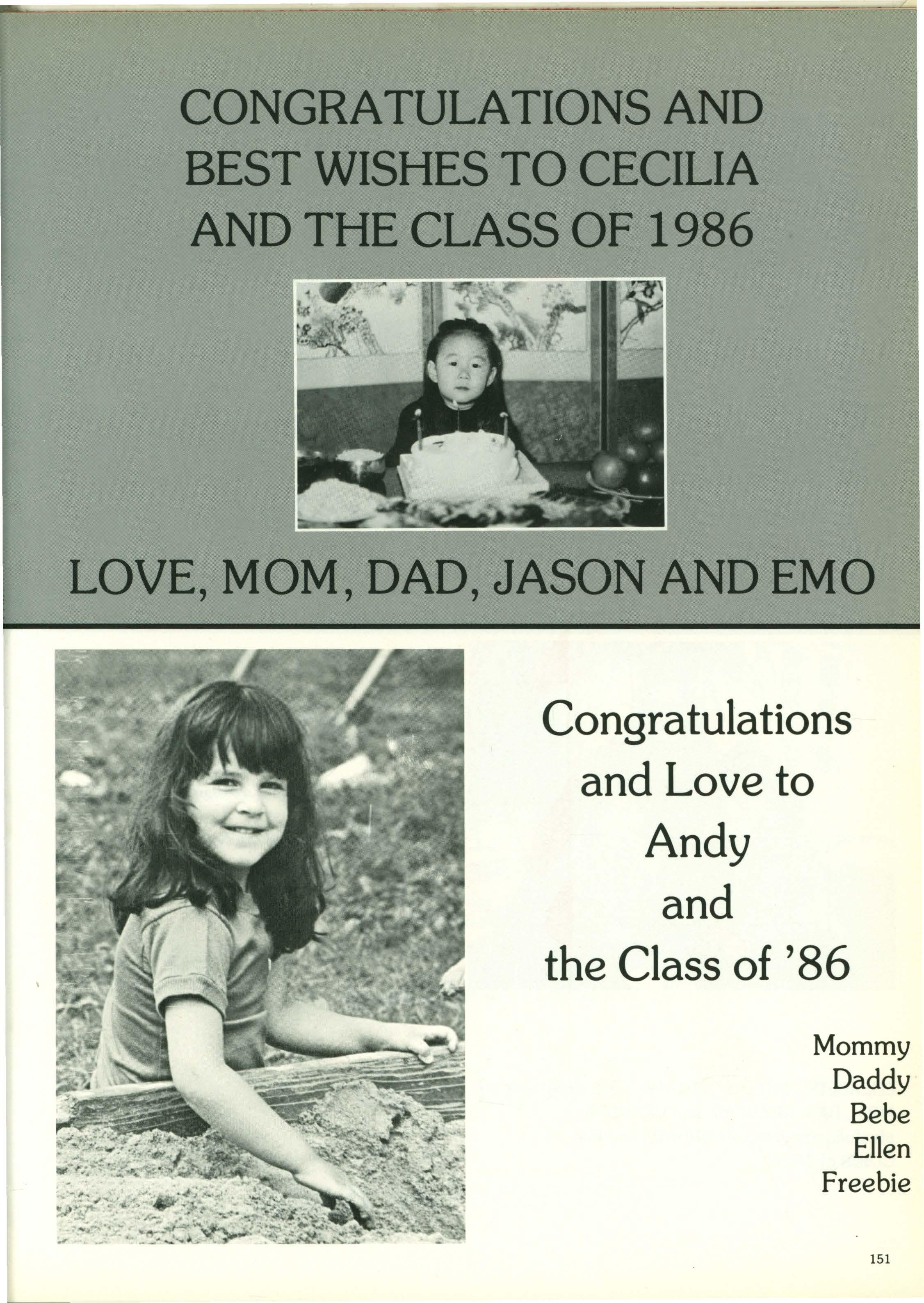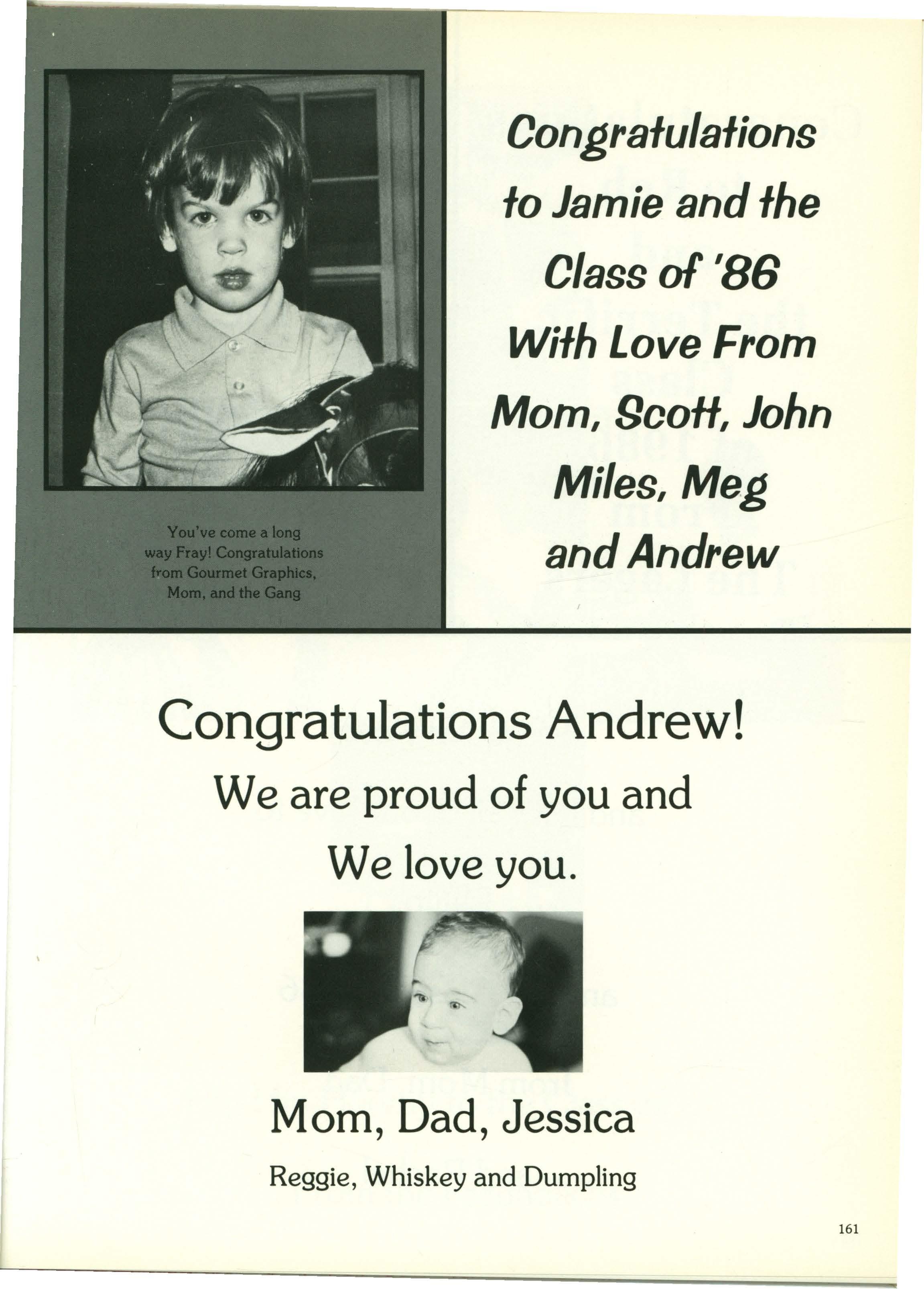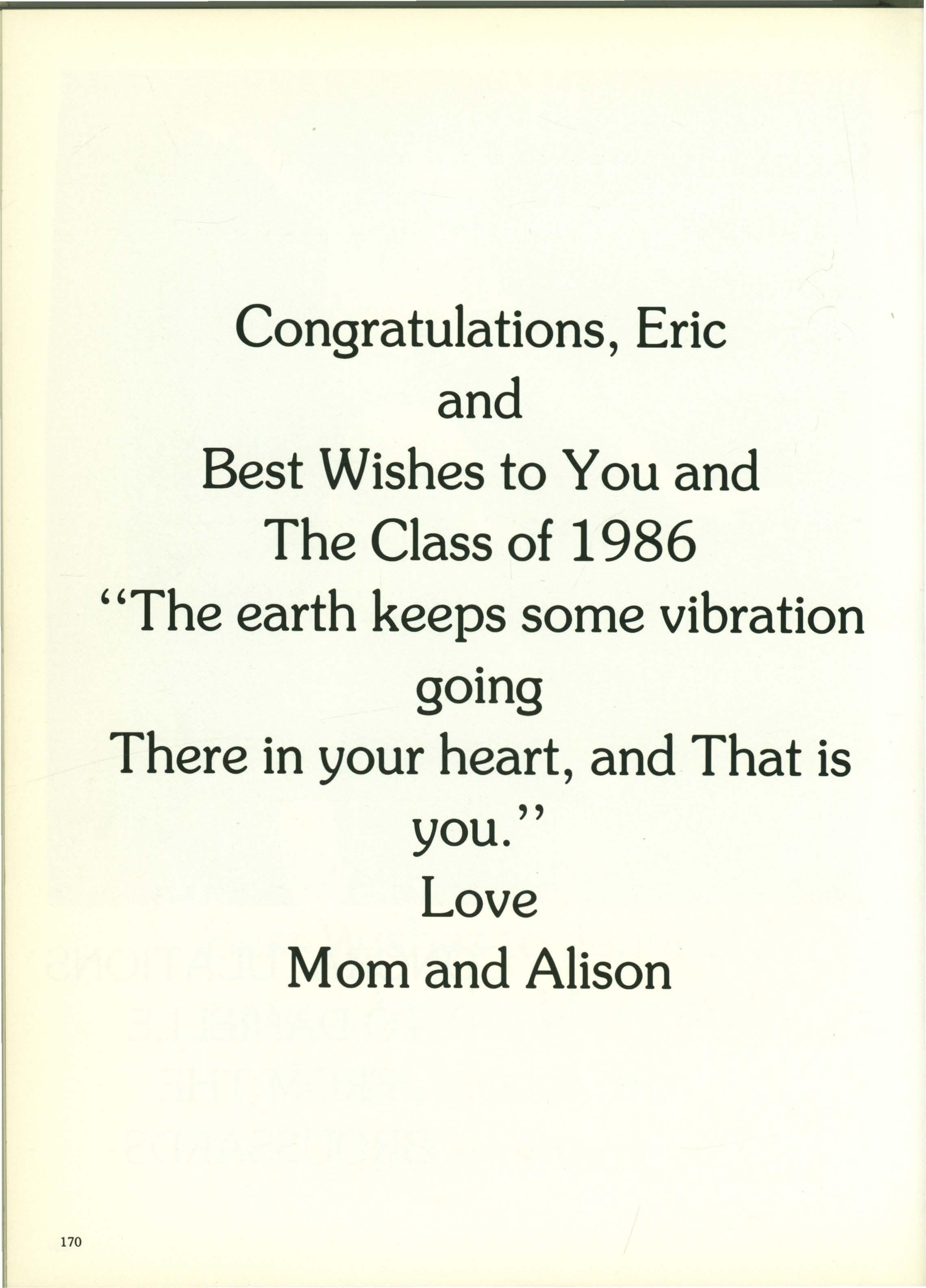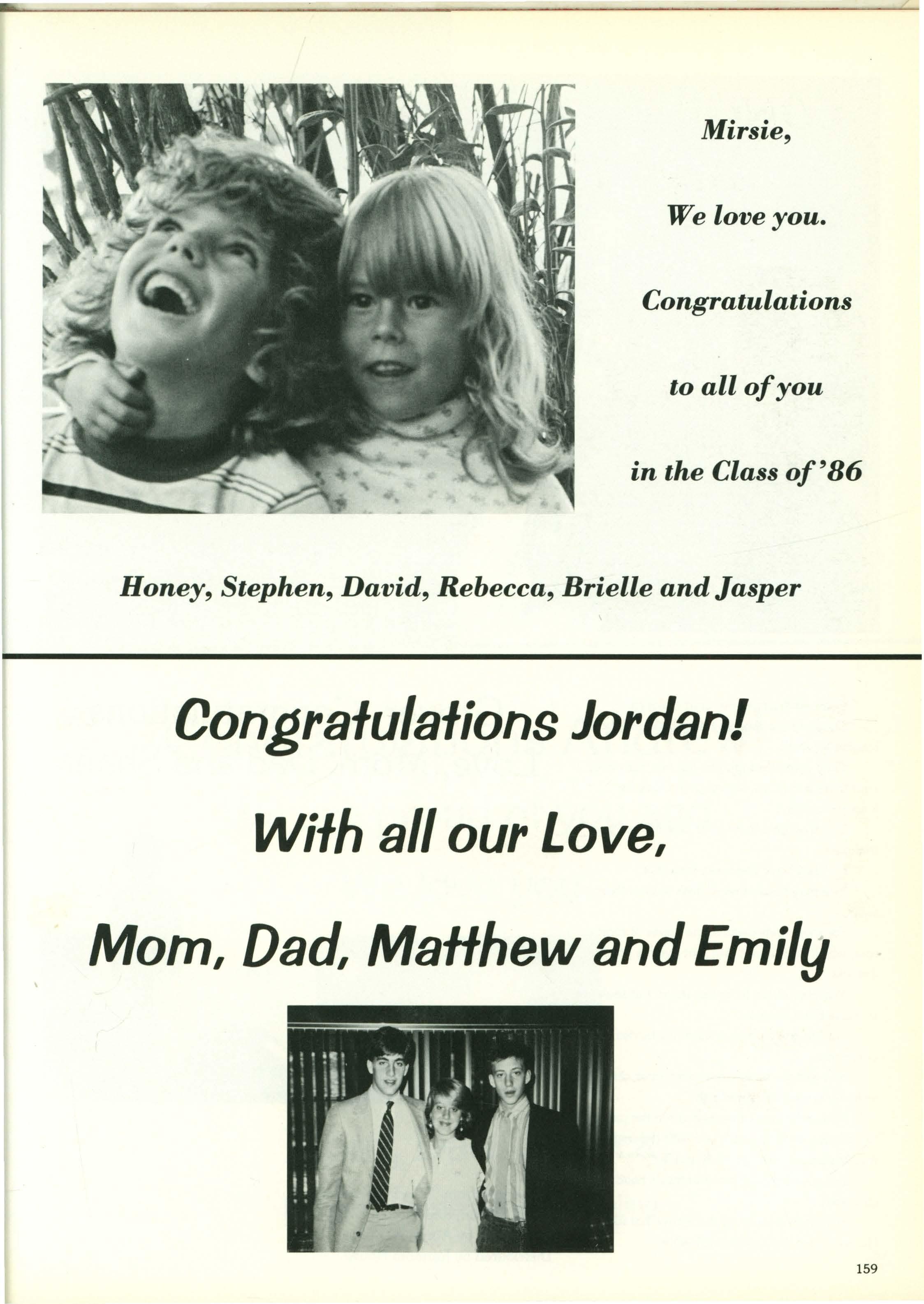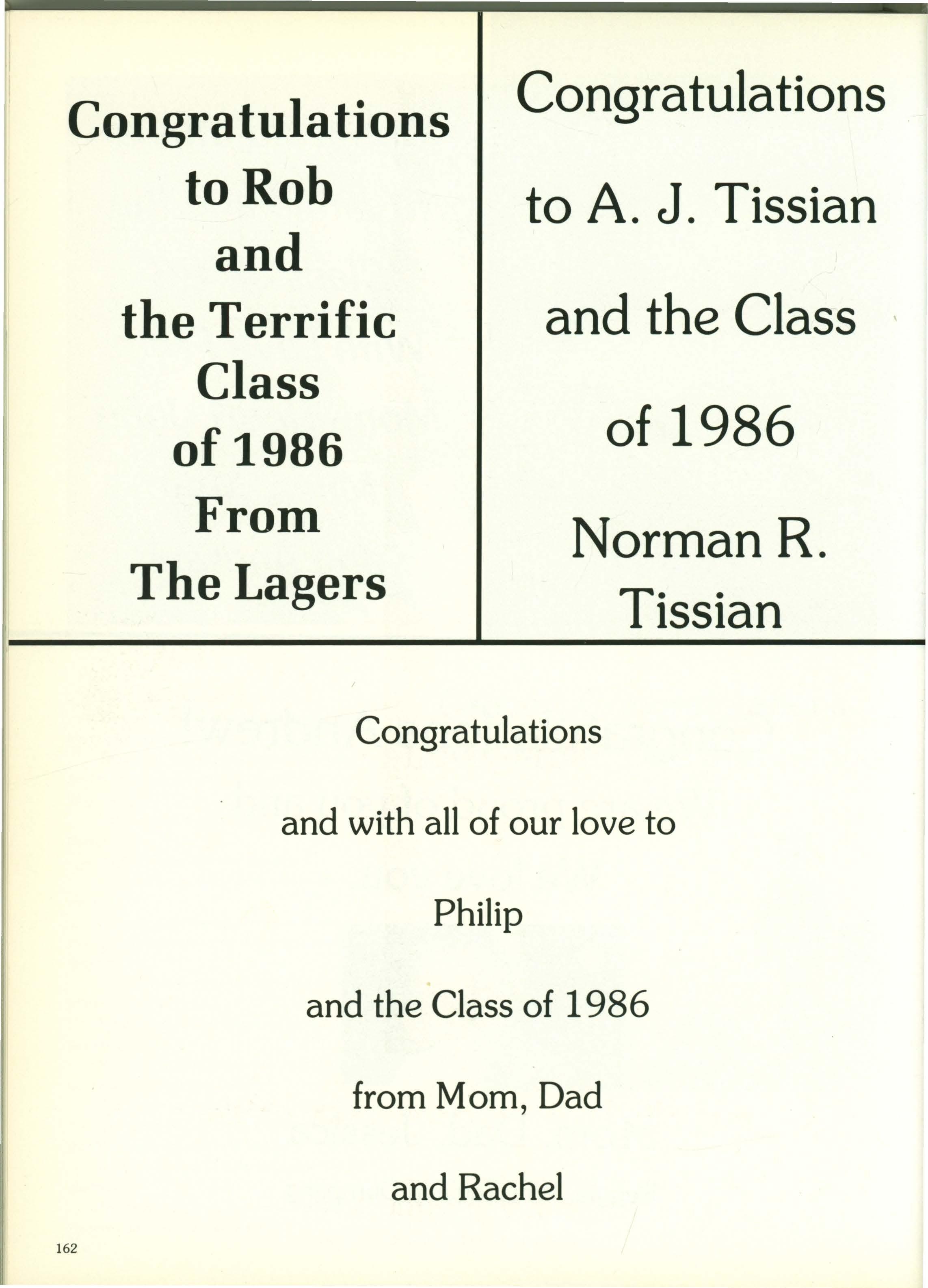 Congratulations and with all of our love to Philip and the Class of 1986 from Mom, Dad and Rachel