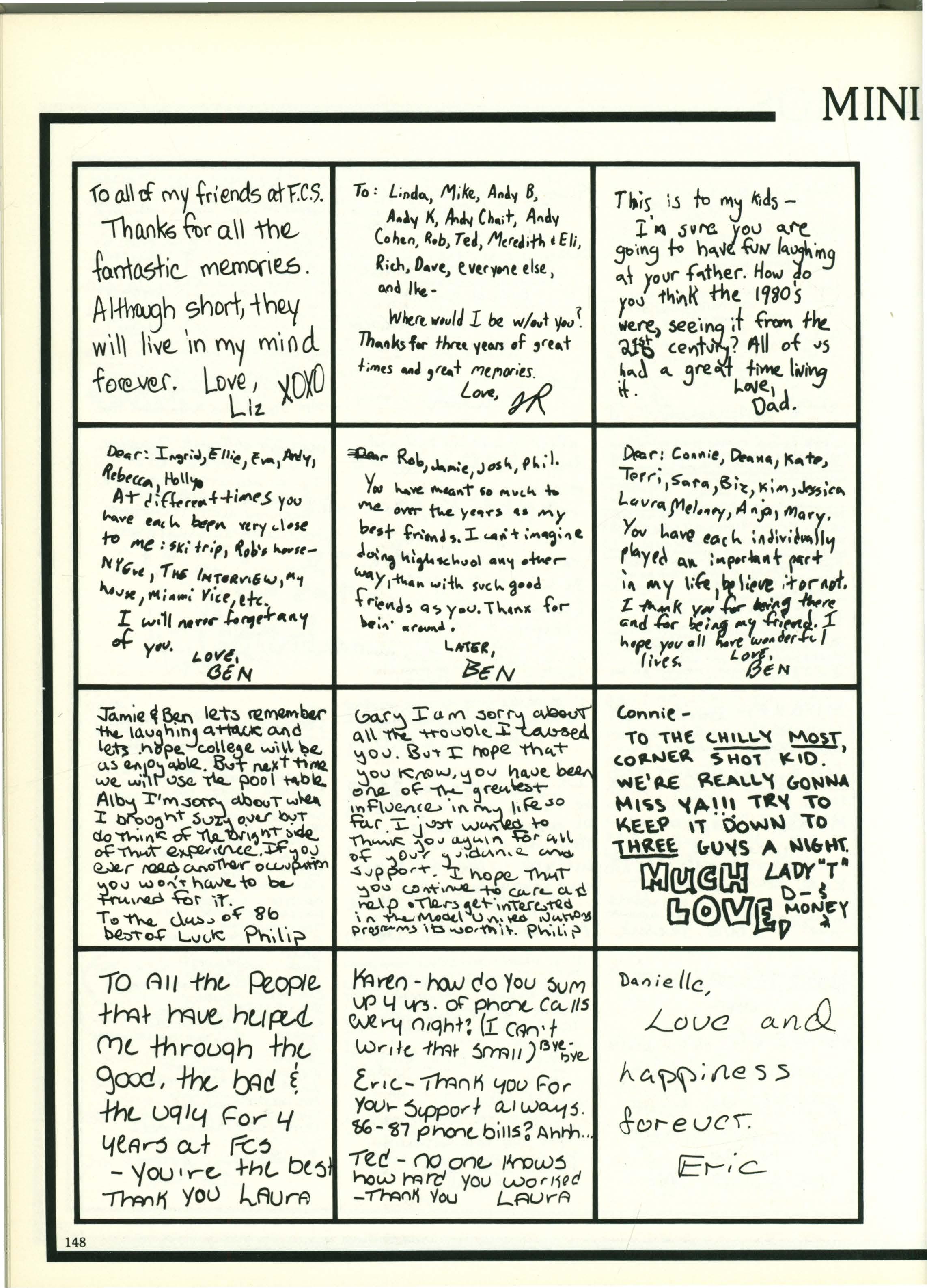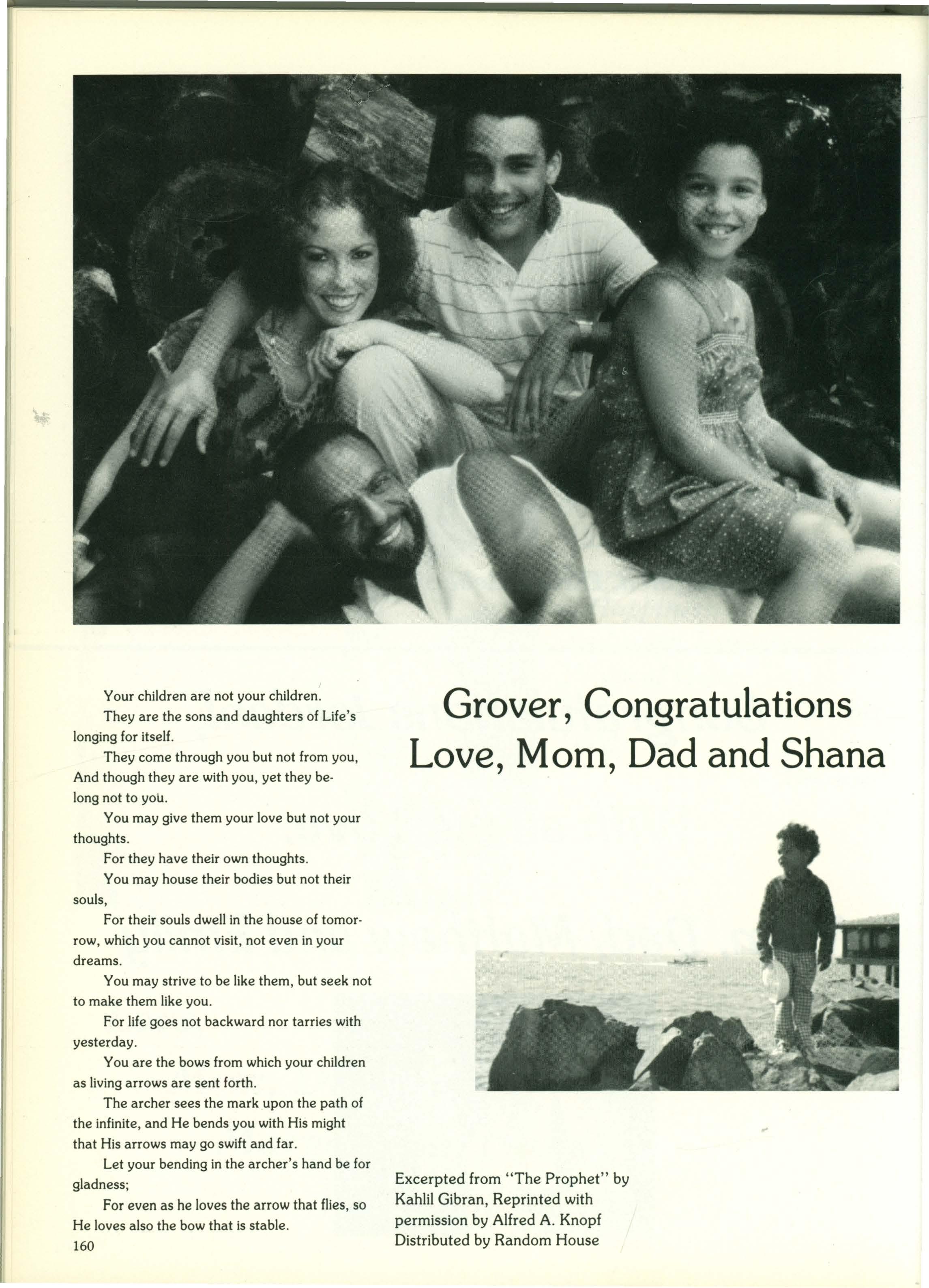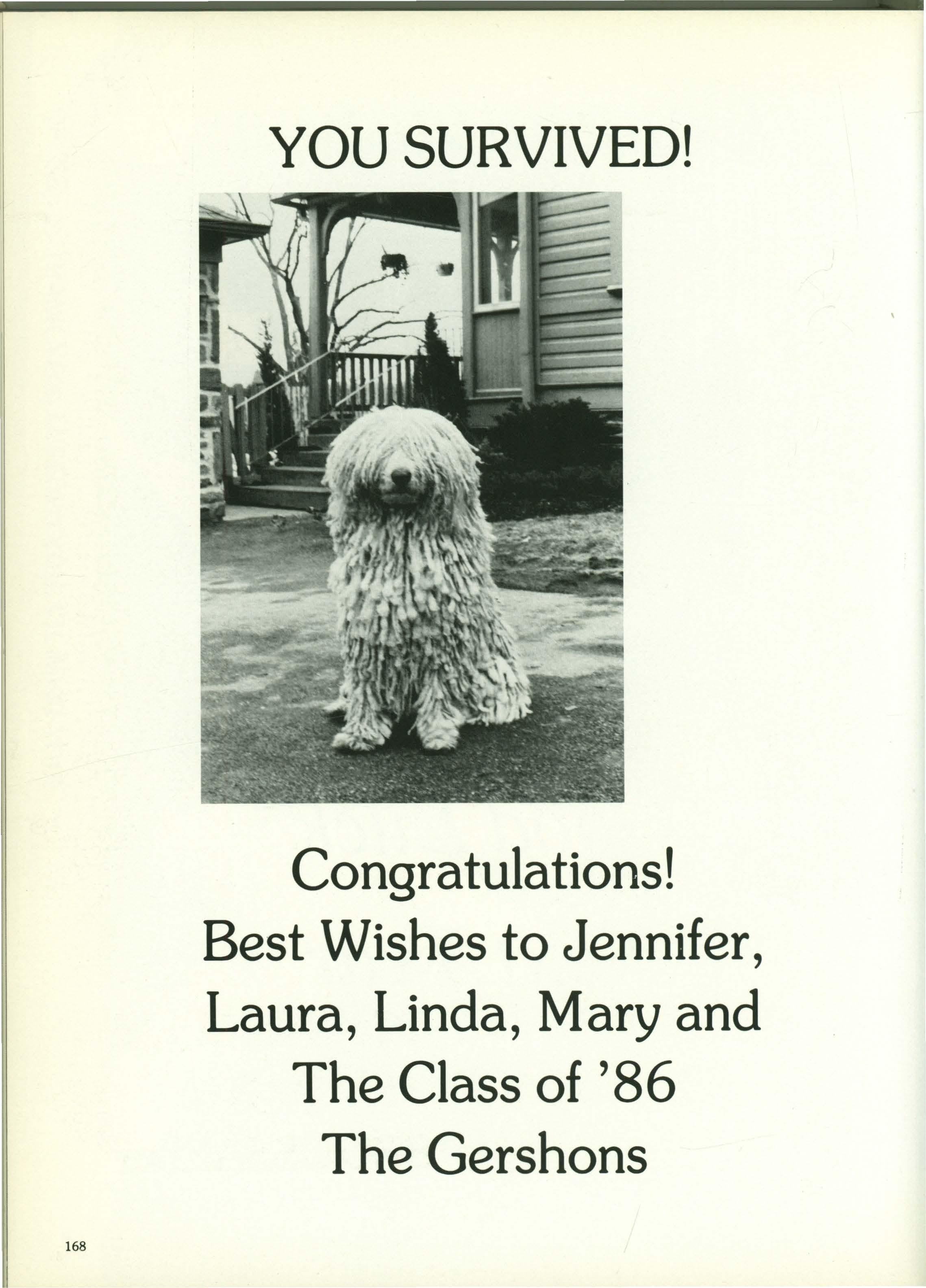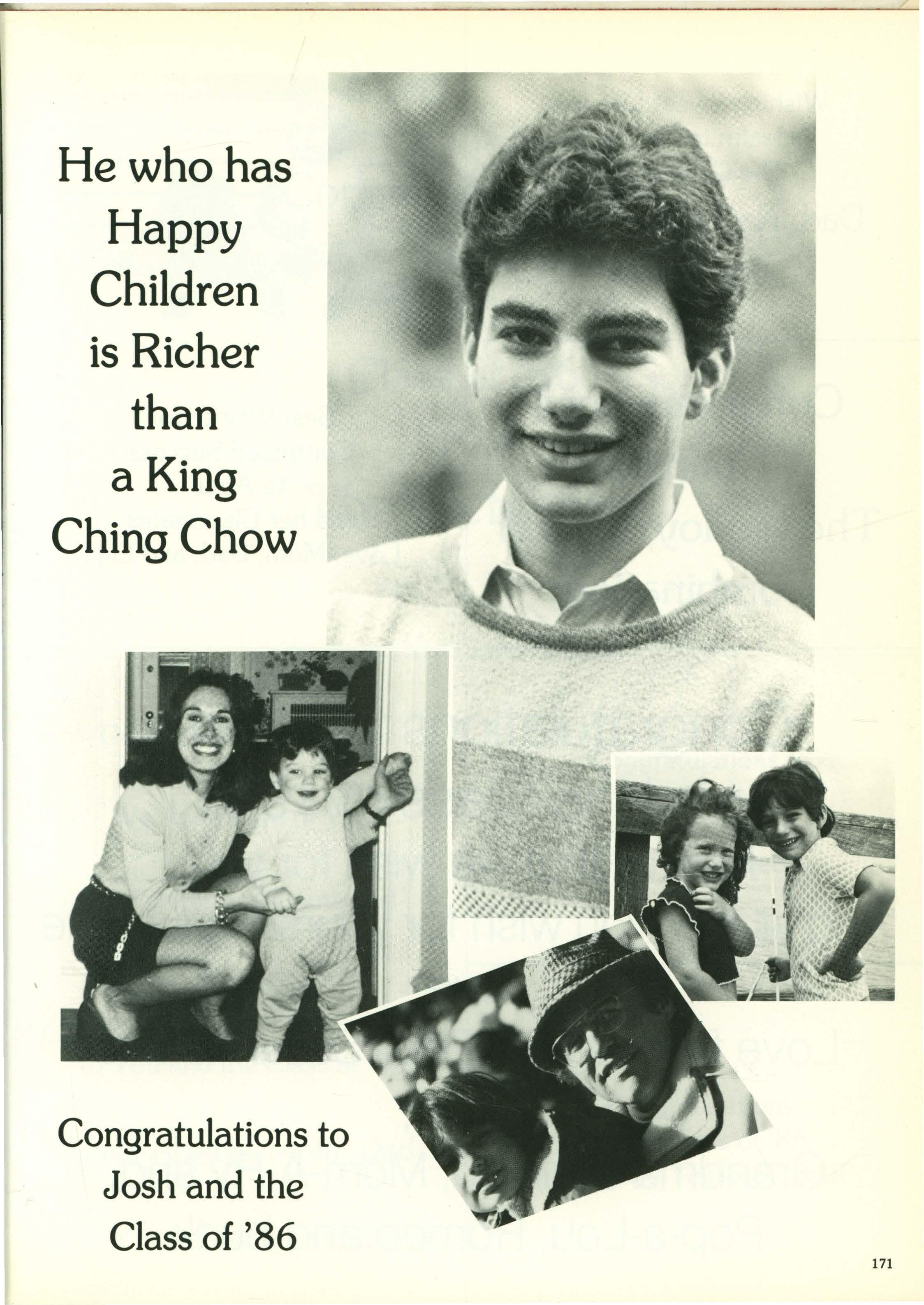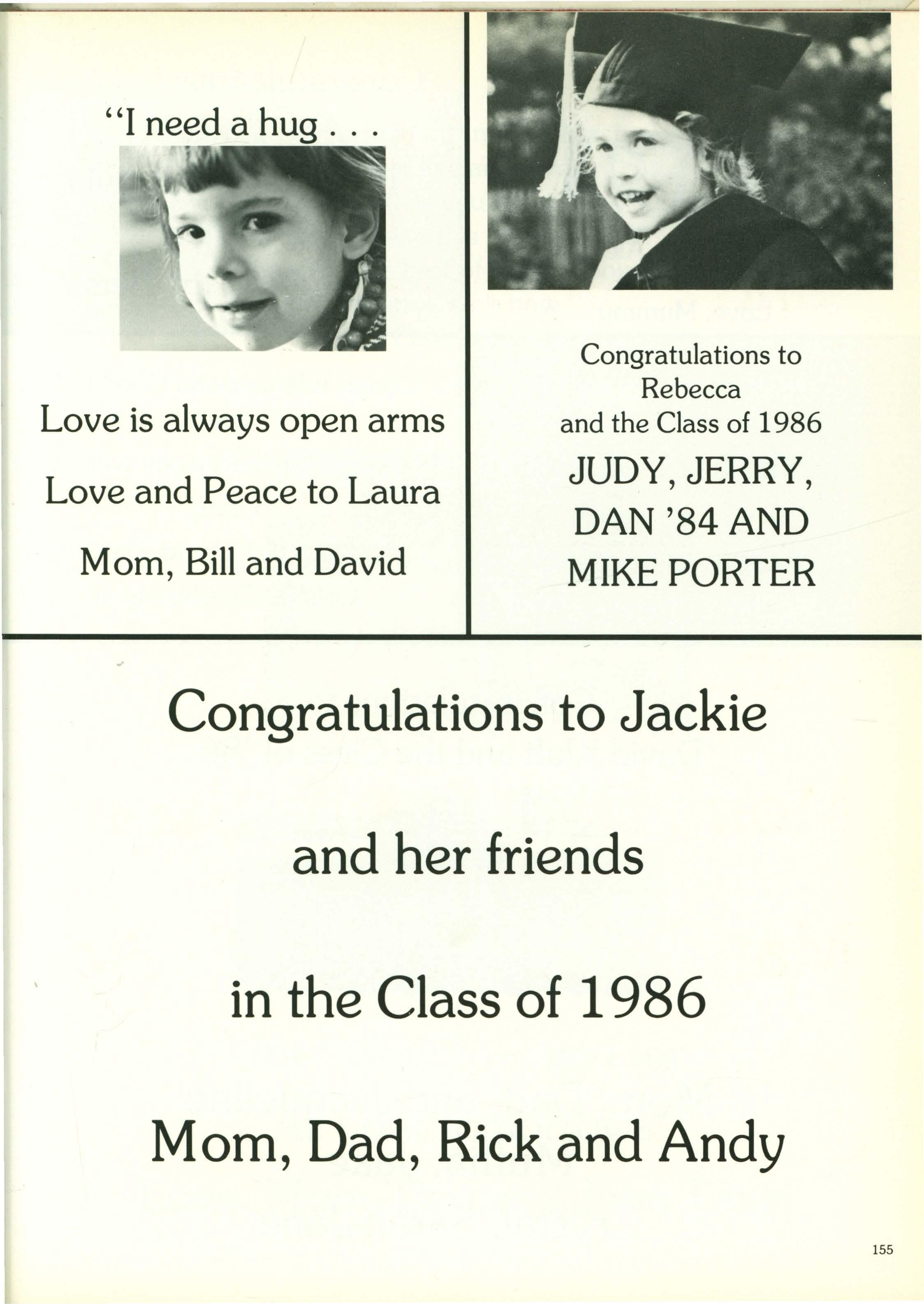 Congratulations and with all of our love to Philip and the Class of 1986 from Mom, Dad and Rachel