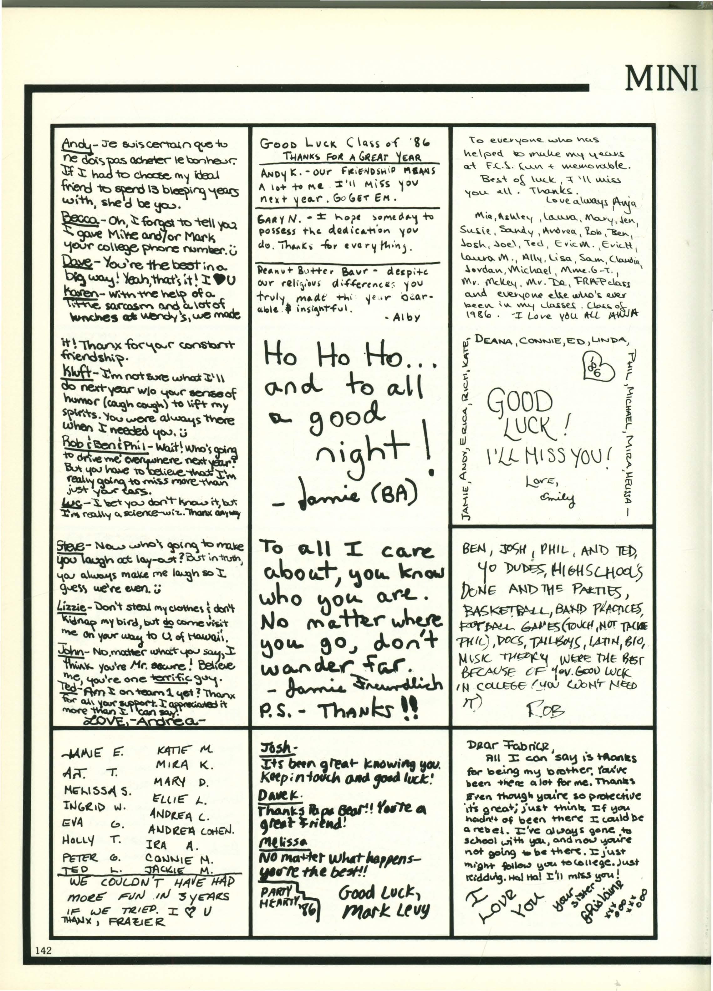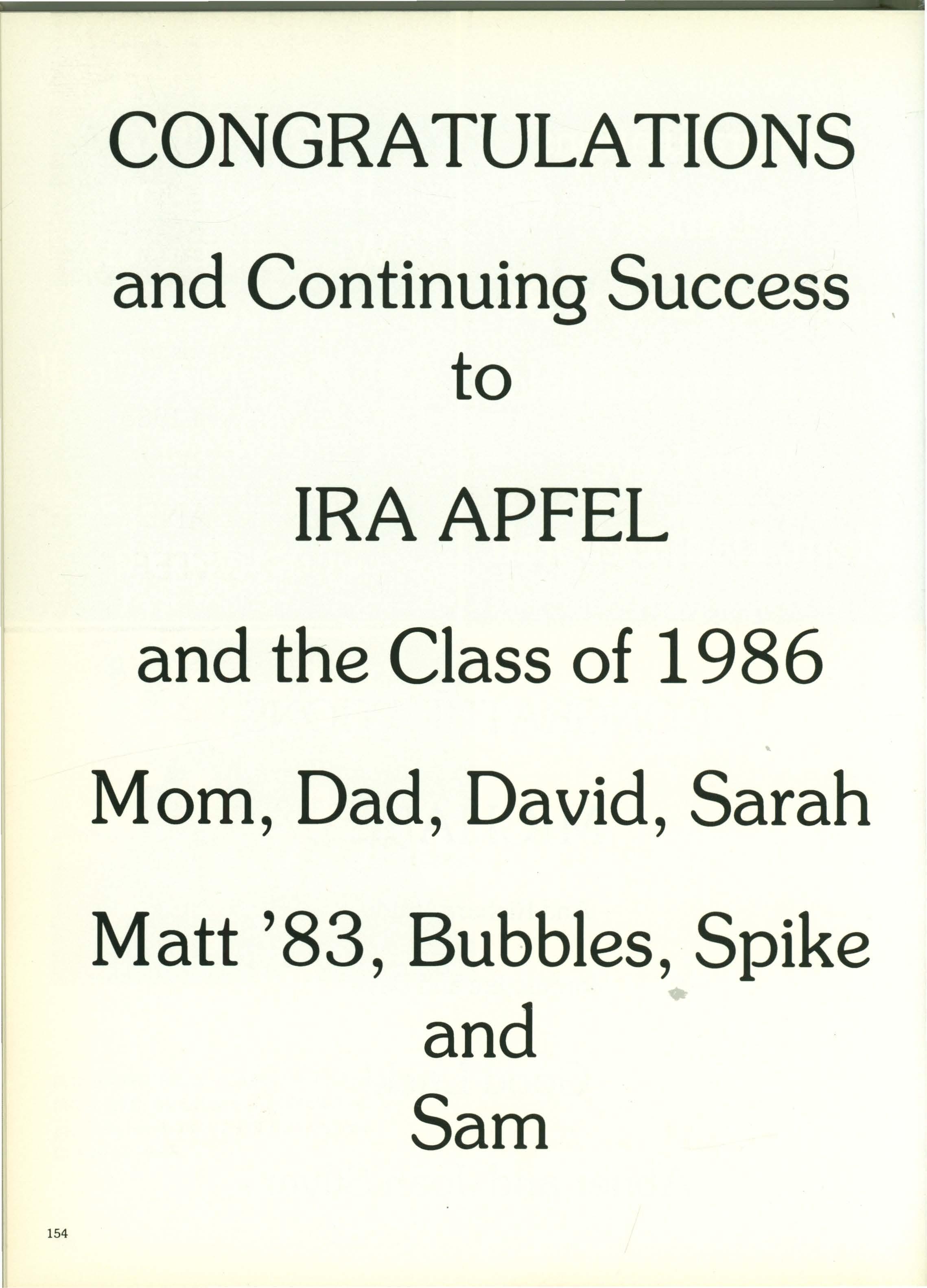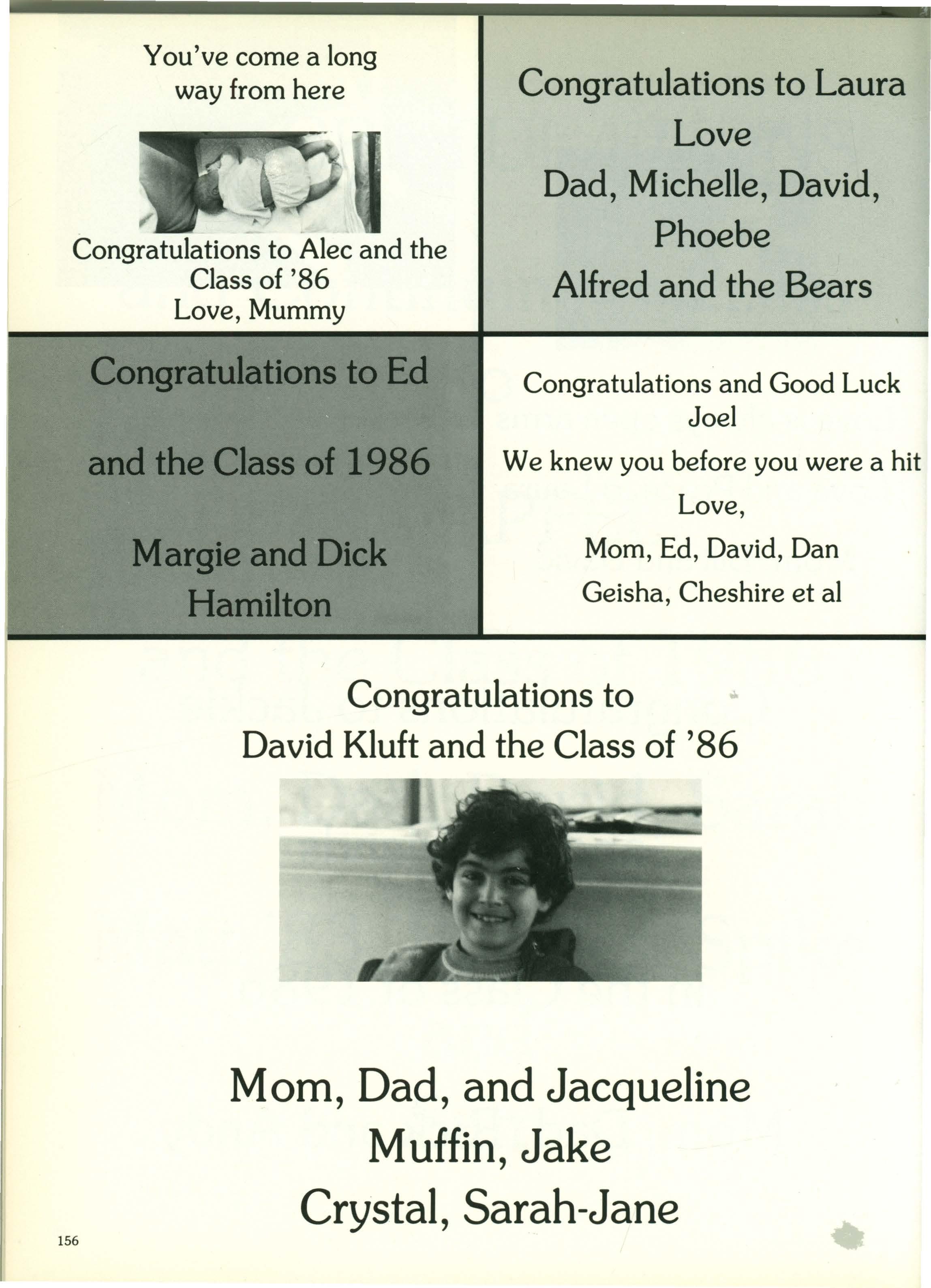 Congratulations to • David Kluft and the Class of '86 Mom, Dad, and Jacqueline