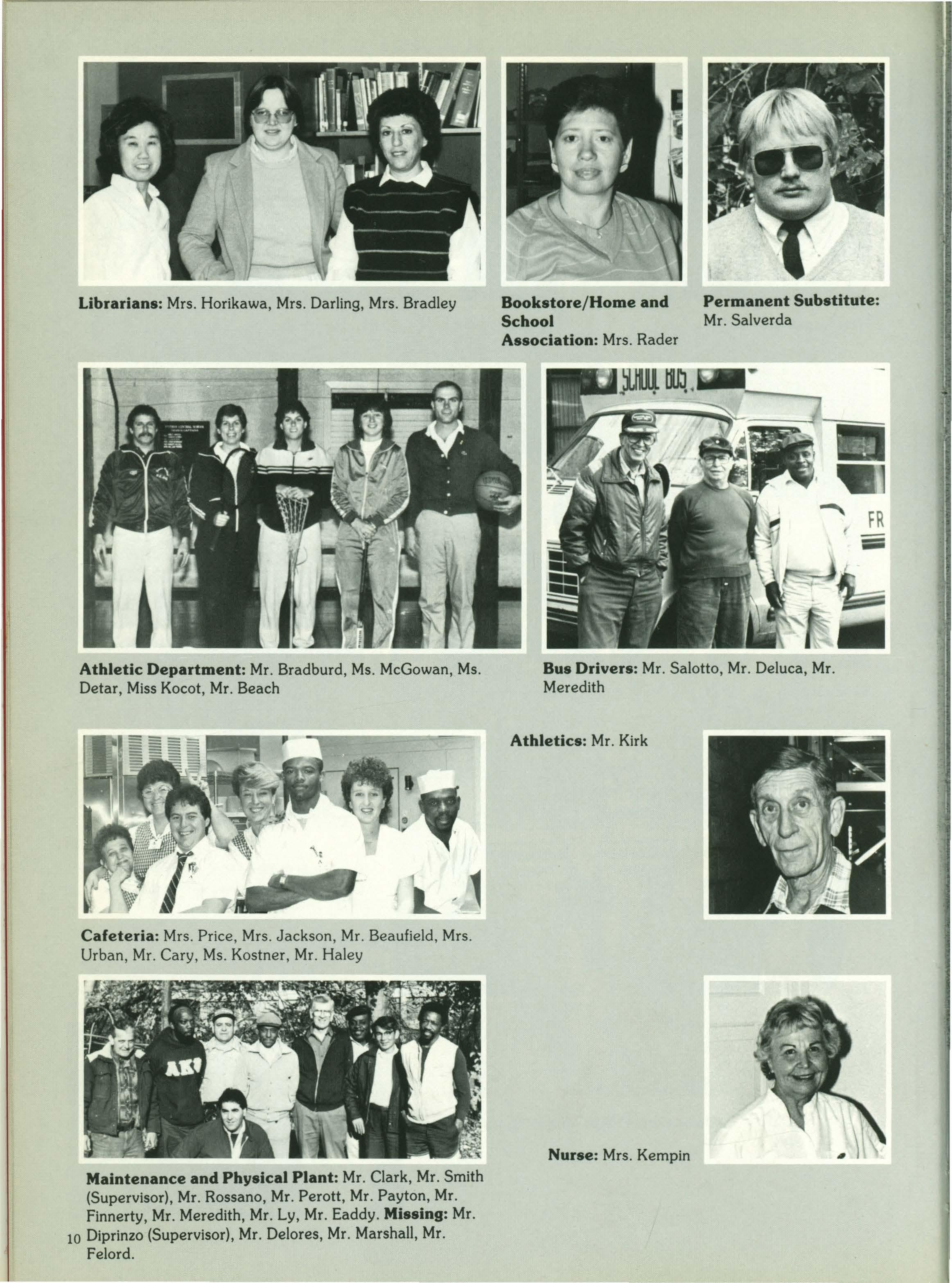 Maintenance and Physical Plant: Mr. Clark, Mr . Smith (Supervisor), Mr. Rossano, Mr Perott, Mr Payton, Mr. Finnerty, Mr . Meredith, Mr. Ly, Mr. Eaddy. Missing: Mr. 10 Diprinzo (Supervisor), Mr. Delores, Mr Marshall, Mr. Felord.