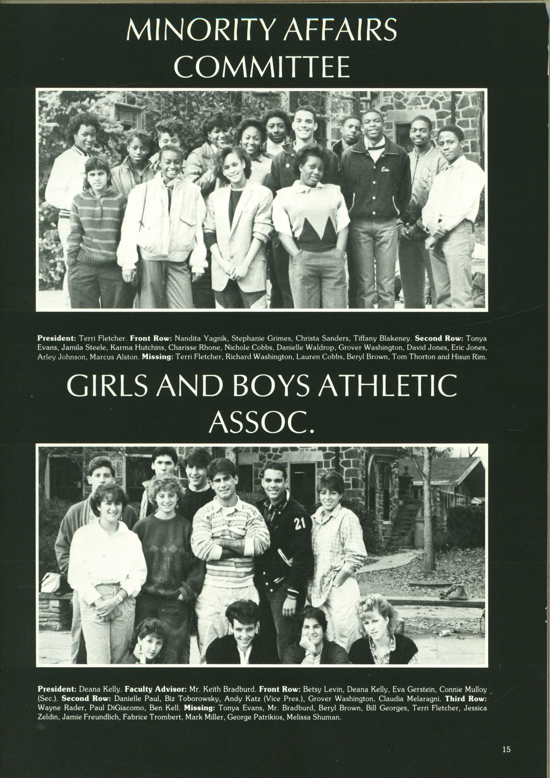 President: Deana Kelly. Faculty Advisor: Mr. Keith Bradburd. Front Row: Betsy Levin, Deana Kelly, Eva Gerstein, Connie Mulloy (Sec.). Second Row: Danielle Paul, Biz Toborowsky, Andy Katz (Vice Pres.), Grover Washington, Claudia Melaragni. Third Row: Wayne Rader, Paul DiGiacomo, Ben Kell. Missing: Tonya Evans, Mr. Bradburd, Beryl Brown, Bill Georges, Terri Fletcher, Jessica Zeldin, Jamie Freundlich, Fabrice Trombert, Mark Miller, George Patrikios, Melissa Shuman.