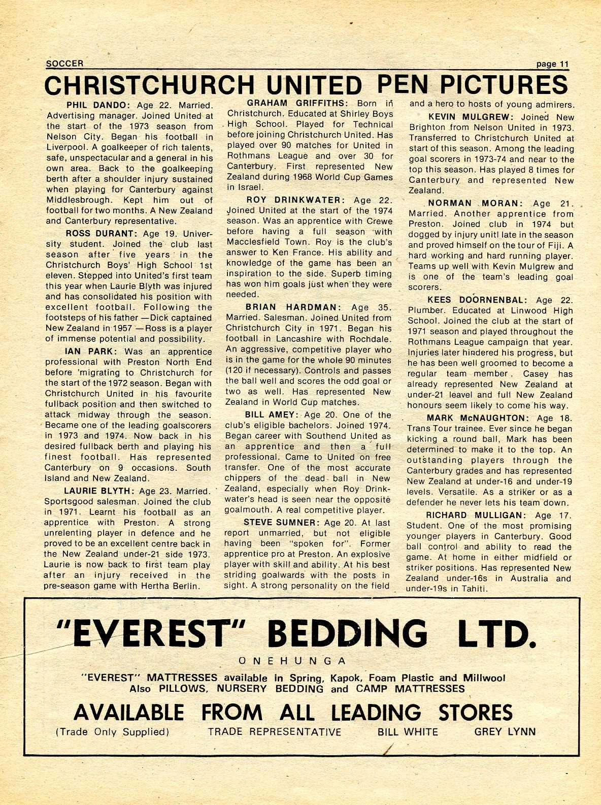 This is the match programme published for New Zealand's 1975 Chatham Cup final between Blockhouse Bay and Christchurch United. The game was won 4-2 after extra time by Christchurch United. The match was played at Auckland's Newmarket Park on September 13, 1975. More information about Friends of Football: www.friendsoffootballnz.com.