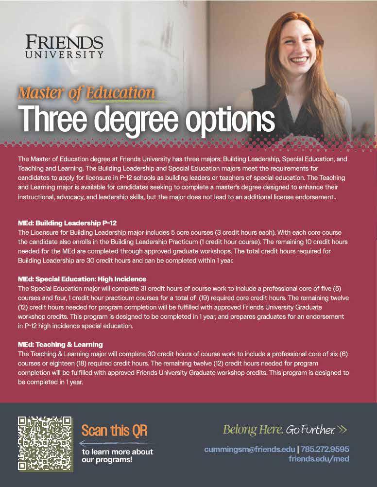 If you have any questions, please call our office at 316-295-5516 or email us at educationworkshop@friends edu We love serving our area teachers!