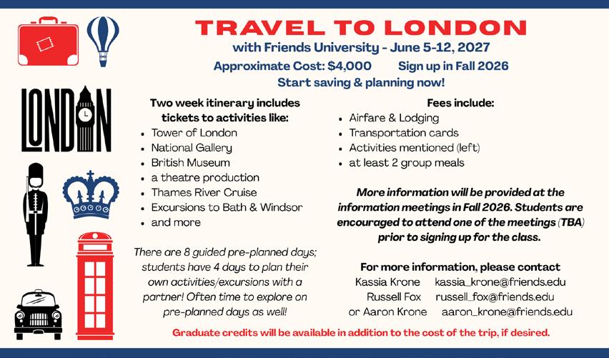 Friends University does not discriminate against academically qualified students on the basis of race, color, national or ethnic origin, sex, disability or age in its programs and activities. Accredited by the Higher Learning Commission and a member of the North Central Association, 230 S. LaSalle Street, Suite 7-500, Chicago, IL 60604; www.ncahlc.org; 1-800-621-7440.