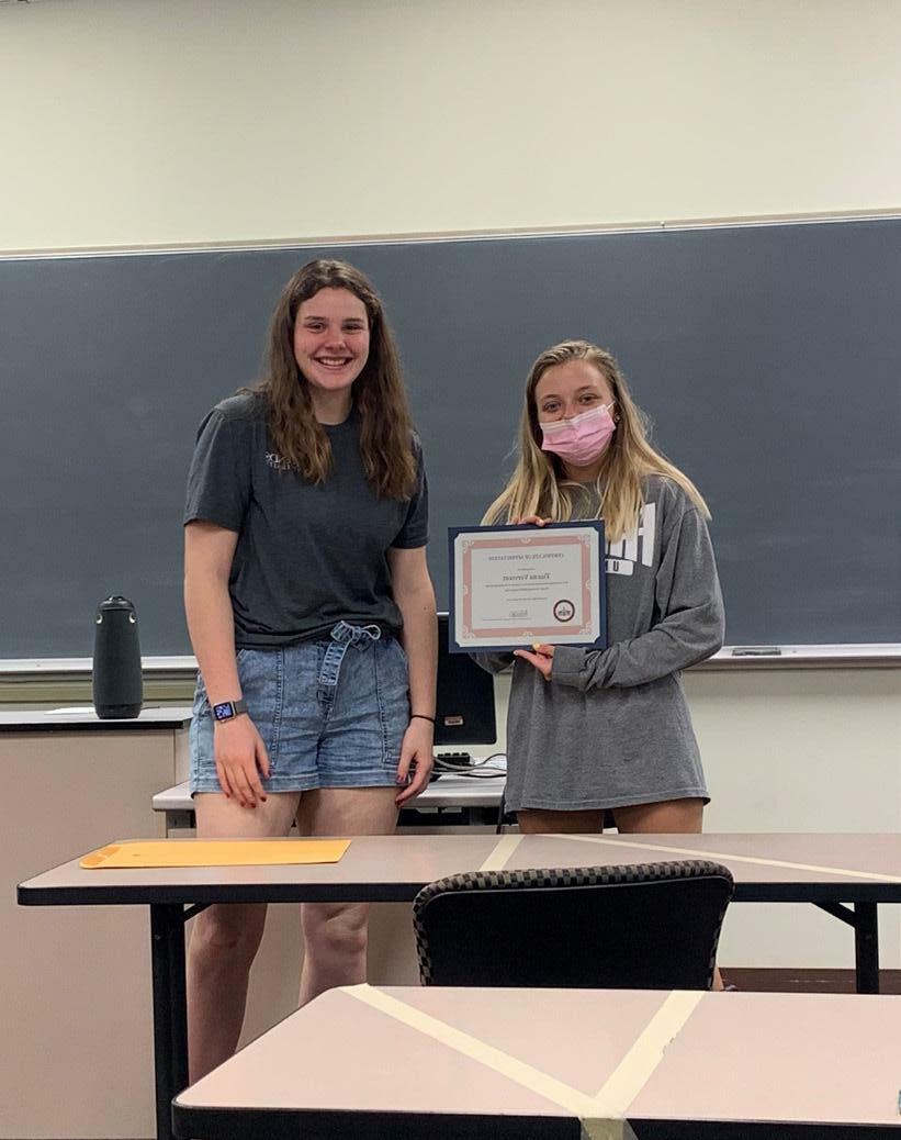 Outgoing Health Science officers Abbey Fisher (Executive President), Tianna Vervoort (VP of Membership), and Tristan Sprague (VP of Finance) were recognized by the club members at the last spring semester meeting.
